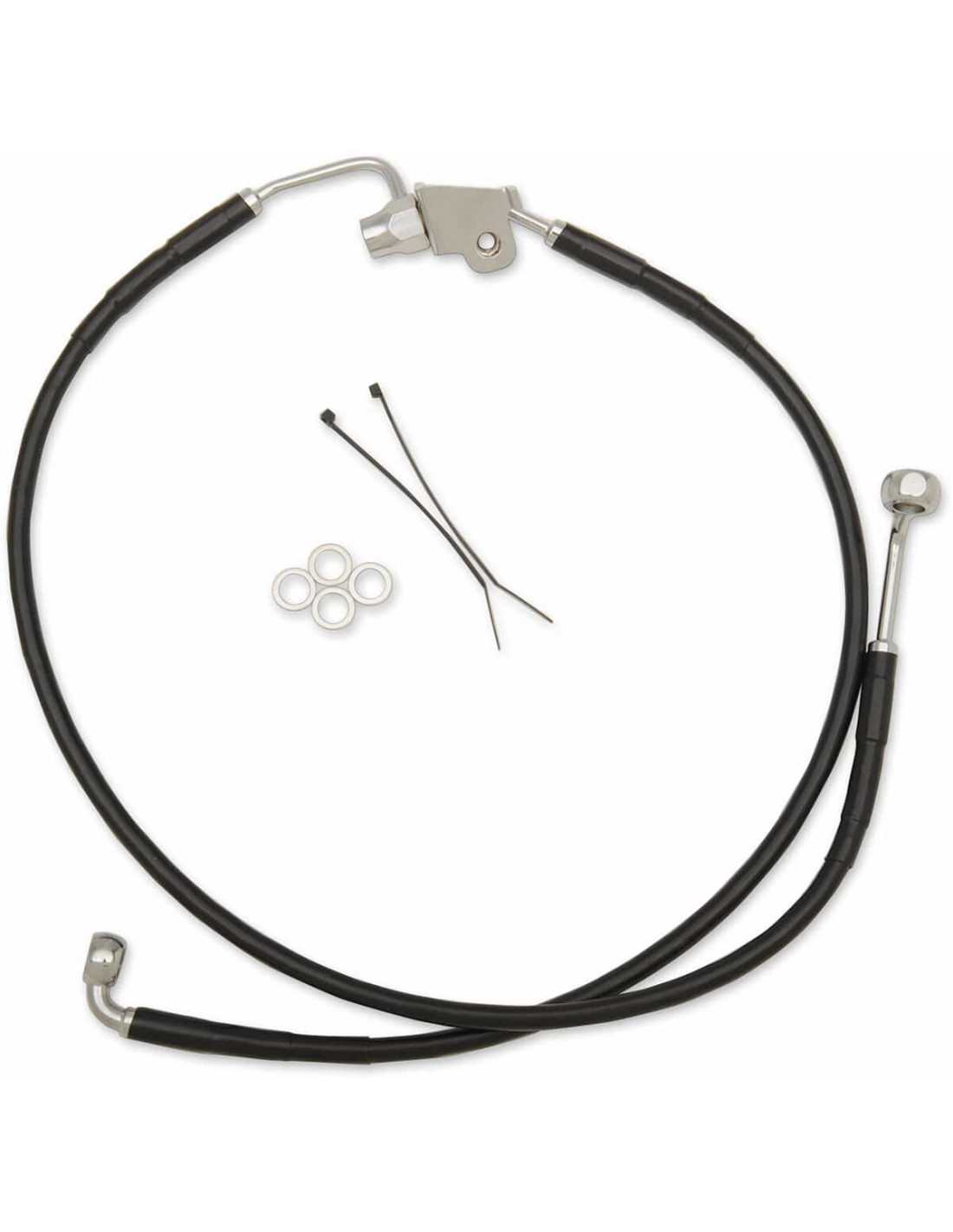 Drag SpecialtiesKit tubo freno in acciaio inossidabileTubi in acciaio inossidabile con rivestimento trasparente o in treccia metallica con rivestimento nero in vinile con raccordi in acciaio cromato Made in USA< /li>