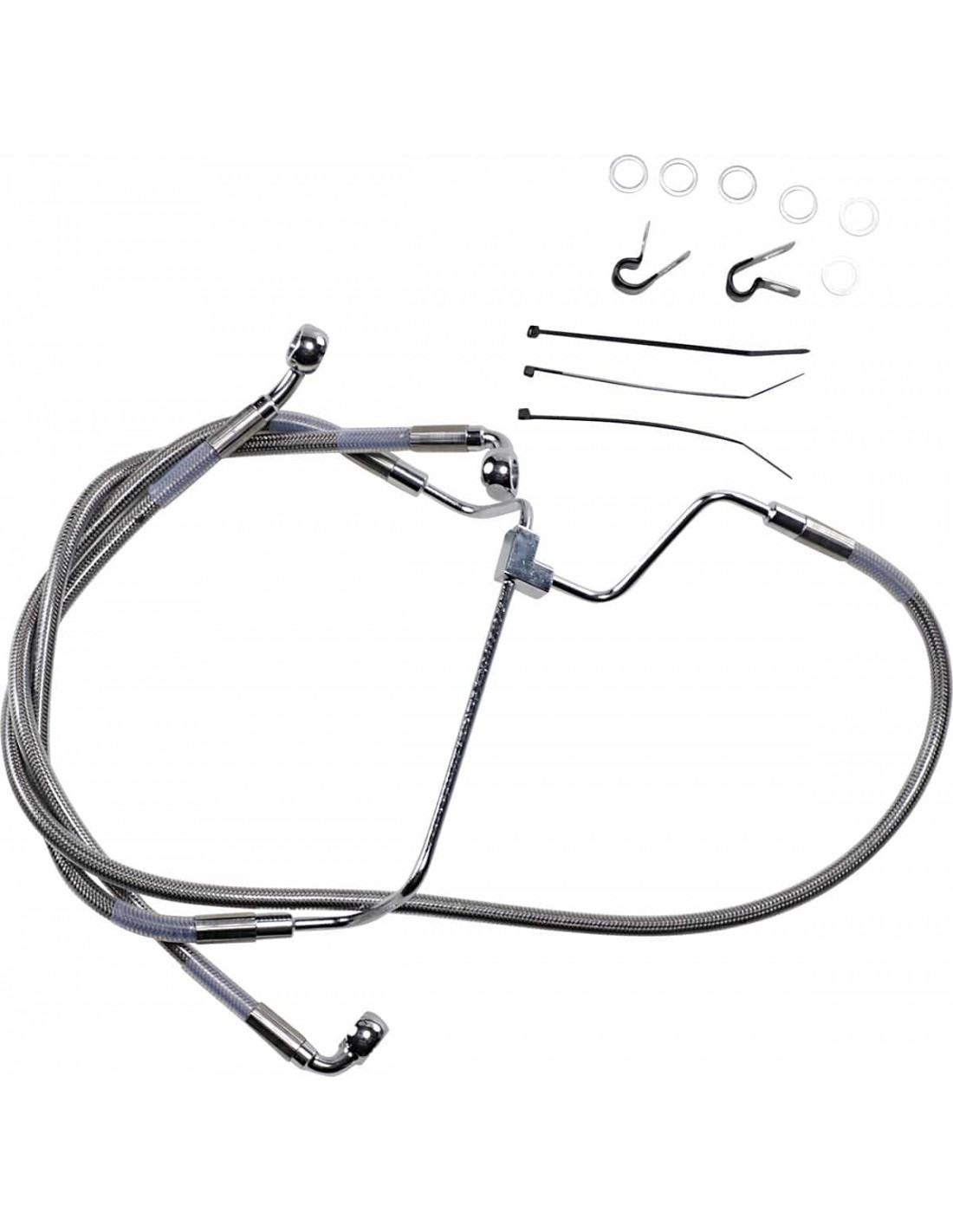Drag SpecialtiesKit tubo freno in acciaio inossidabile a lunghezza maggiorataCon tubi più lunghi in acciaio inossidabile intrecciato con rivestimento trasparente e con raccordi in acciaio cromato Per tubi inferiori e centrali compatibili di modelli ABS, vedi i tubi di lunghezza standard Made in USA