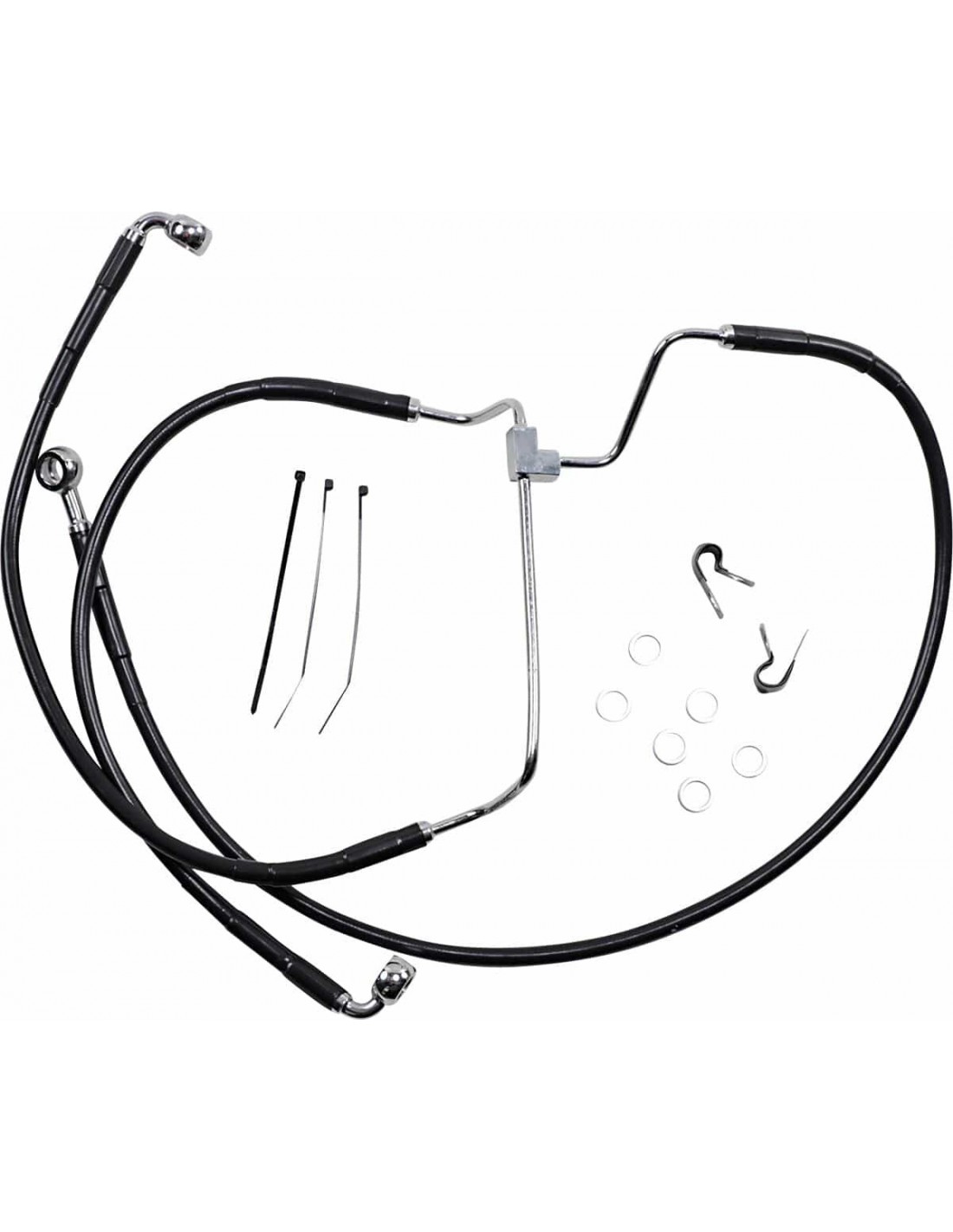 Drag SpecialtiesKit tubo freno in vinile nero a lunghezza maggiorataCon tubi più lunghi in treccia metallica con rivestimento nero in vinile con raccordi in acciaio cromato Made in the USA< /li> Tutte le misure sono approssimative