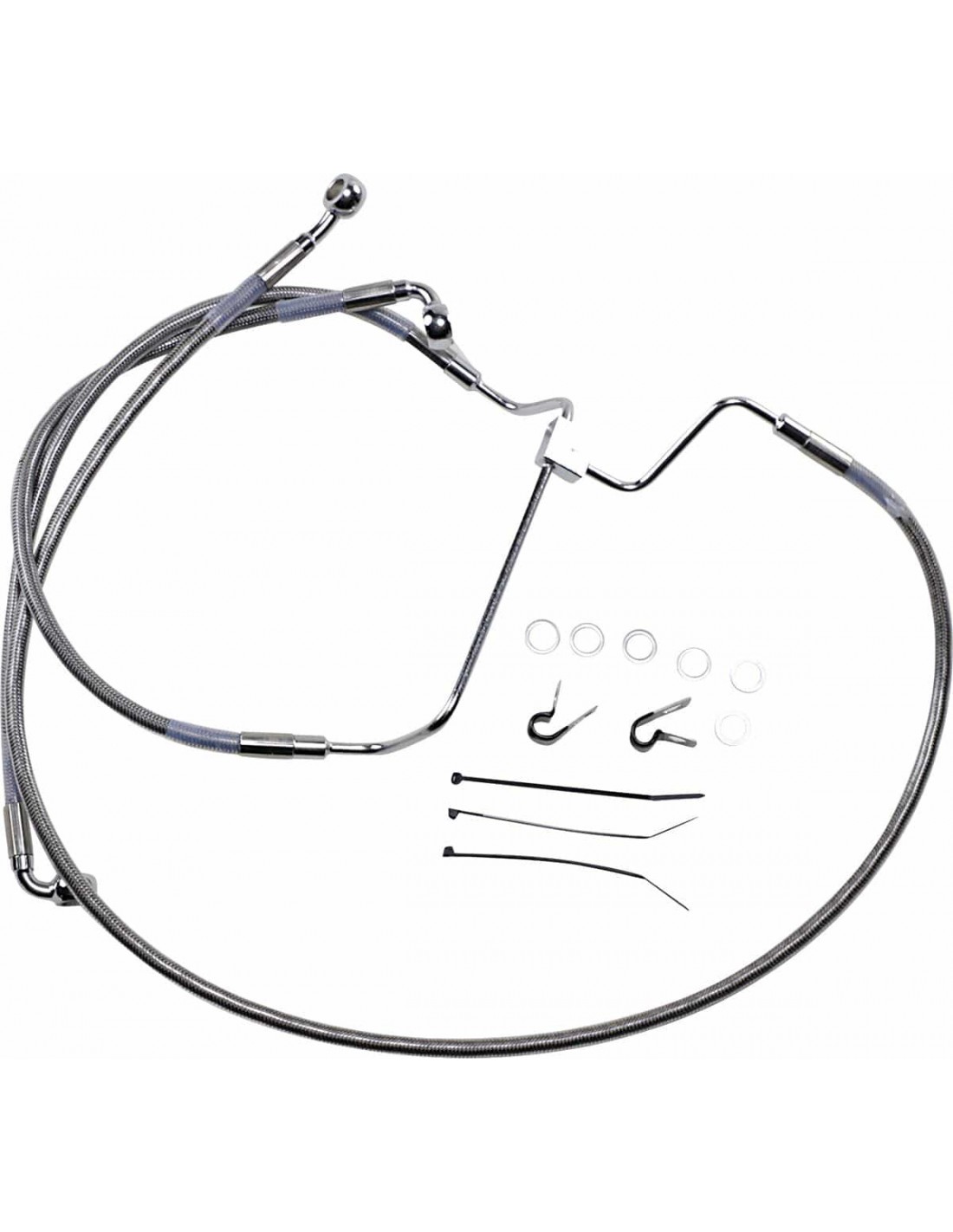 Drag SpecialtiesKit tubo freno in acciaio inossidabile a lunghezza maggiorataCon tubi più lunghi in acciaio inossidabile intrecciato con rivestimento trasparente e con raccordi in acciaio cromato Per tubi inferiori e centrali compatibili di modelli ABS, vedi i tubi di lunghezza standard Made in USA