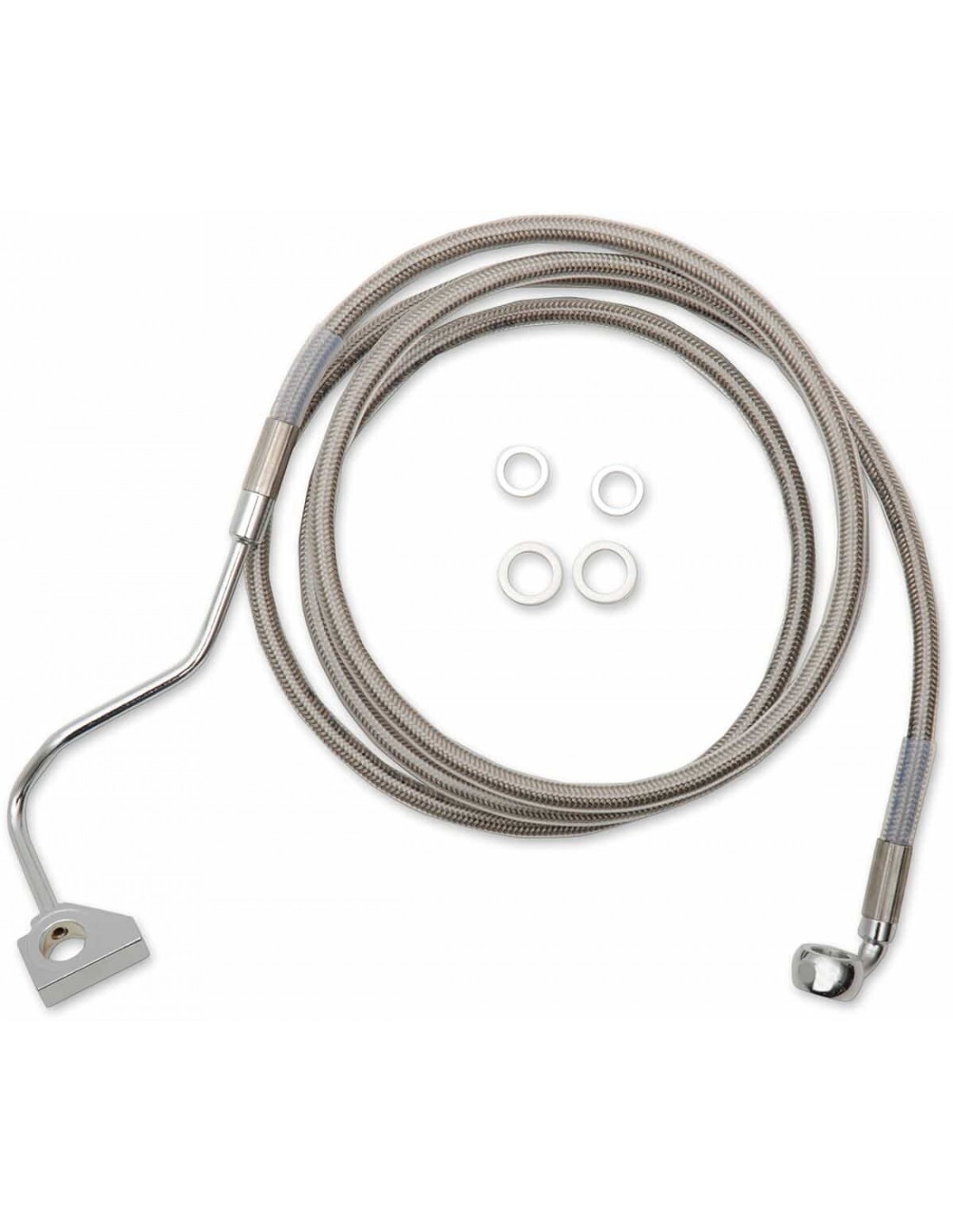 Drag SpecialtiesKit tubo freno in acciaio inossidabile a lunghezza maggiorataCon tubi più lunghi in acciaio inossidabile intrecciato con rivestimento trasparente e con raccordi in acciaio cromato Per tubi inferiori e centrali compatibili di modelli ABS, vedi i tubi di lunghezza standard Made in USA