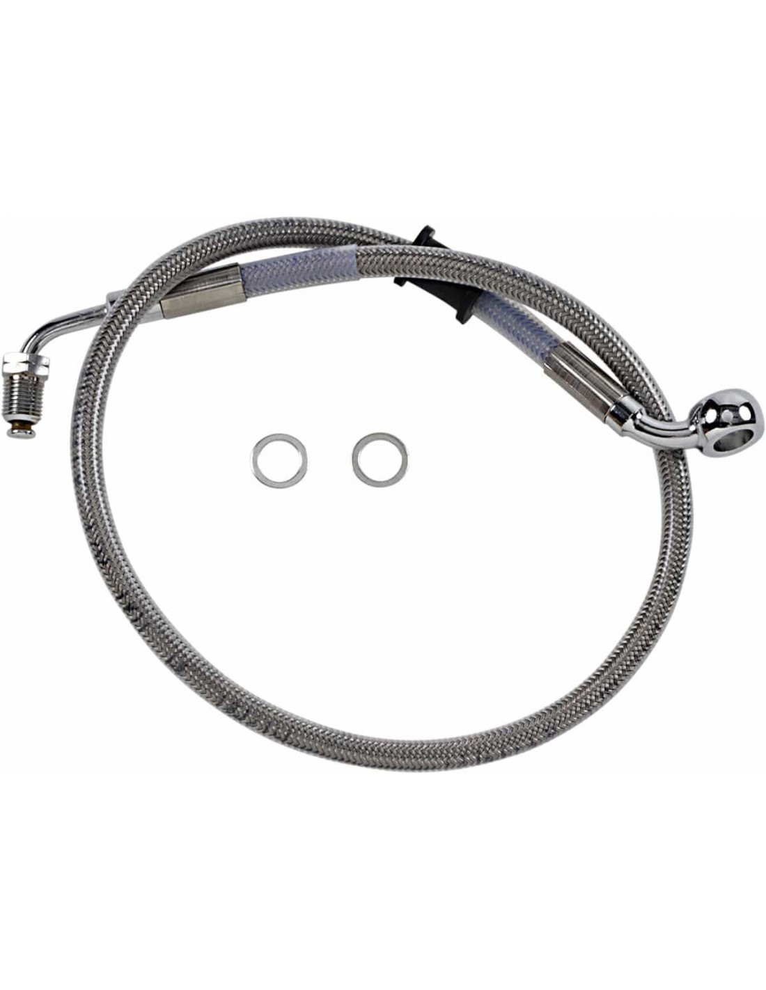 Drag SpecialtiesKit tubo freno in acciaio inossidabileTubi in acciaio inossidabile con rivestimento trasparente o in treccia metallica con rivestimento nero in vinile con raccordi in acciaio cromato Made in USA< /li>Solo tubo freno superiore