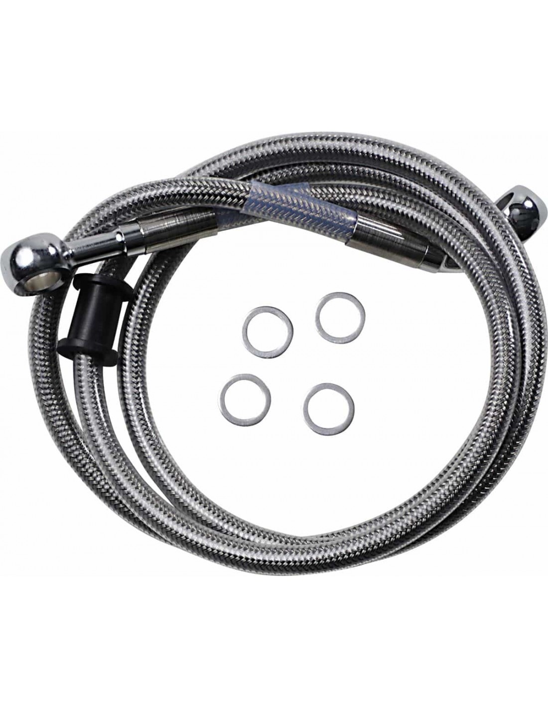 Drag SpecialtiesKit tubo freno in acciaio inossidabileTubi in acciaio inossidabile con rivestimento trasparente o in treccia metallica con rivestimento nero in vinile con raccordi in acciaio cromato Made in USA< /li>