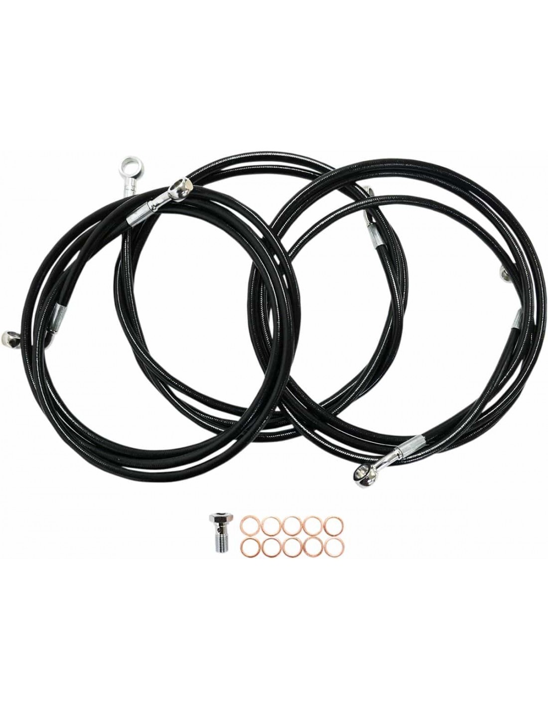 La ChoppersKit tubo freno nero in treccia metallicaCon questo prodotto il calcolo dei cavi non rappresenterà più un problema