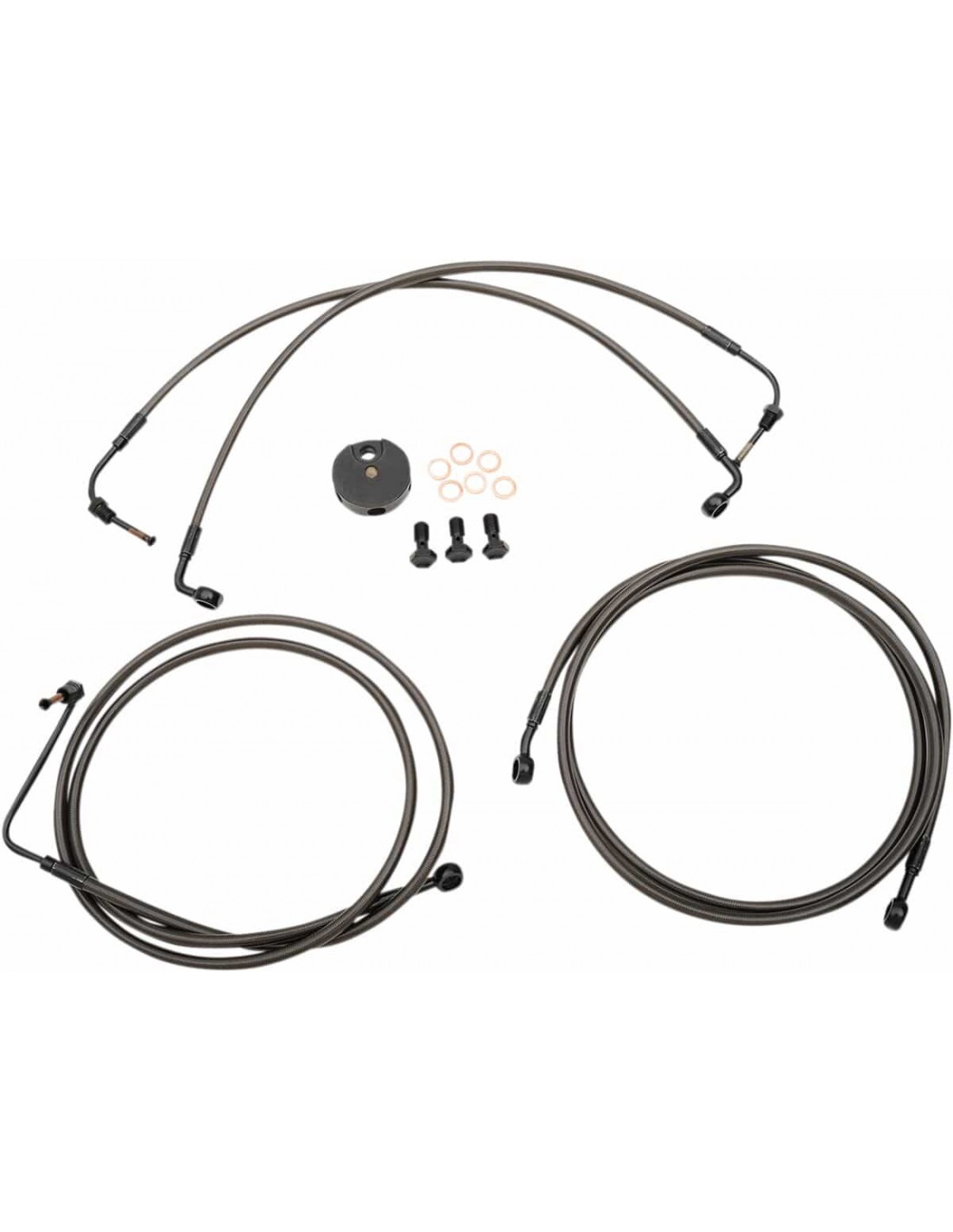 La ChoppersKit tubo freno Midnight in treccia metallicaCon questo prodotto il calcolo dei cavi non rappresenterà più un problema I tubi presentano un effetto grafite o fibra di carbonio per un look custom, i raccordi neri si integrano perfettamente con i comandi e le protezioni di colore nero della moto Made in USA
