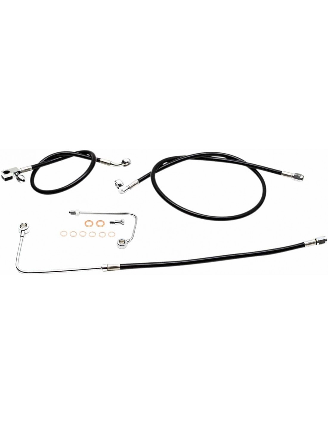 La ChoppersKit tubo freno nero in treccia metallicaCon questo prodotto il calcolo dei cavi non rappresenterà più un problema