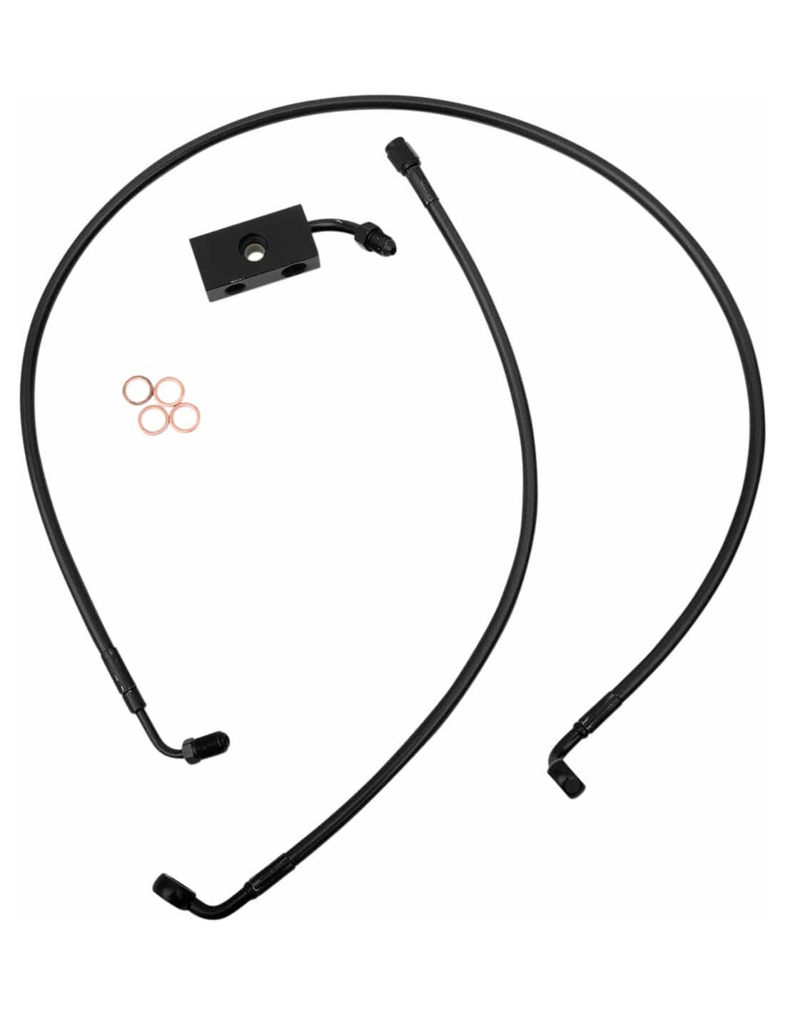 La ChoppersKit tubo freno Midnight in treccia metallicaCon questo prodotto il calcolo dei cavi non rappresenterà più un problema I tubi presentano un effetto grafite o fibra di carbonio per un look custom, i raccordi neri si integrano perfettamente con i comandi e le protezioni di colore nero della moto Made in USA