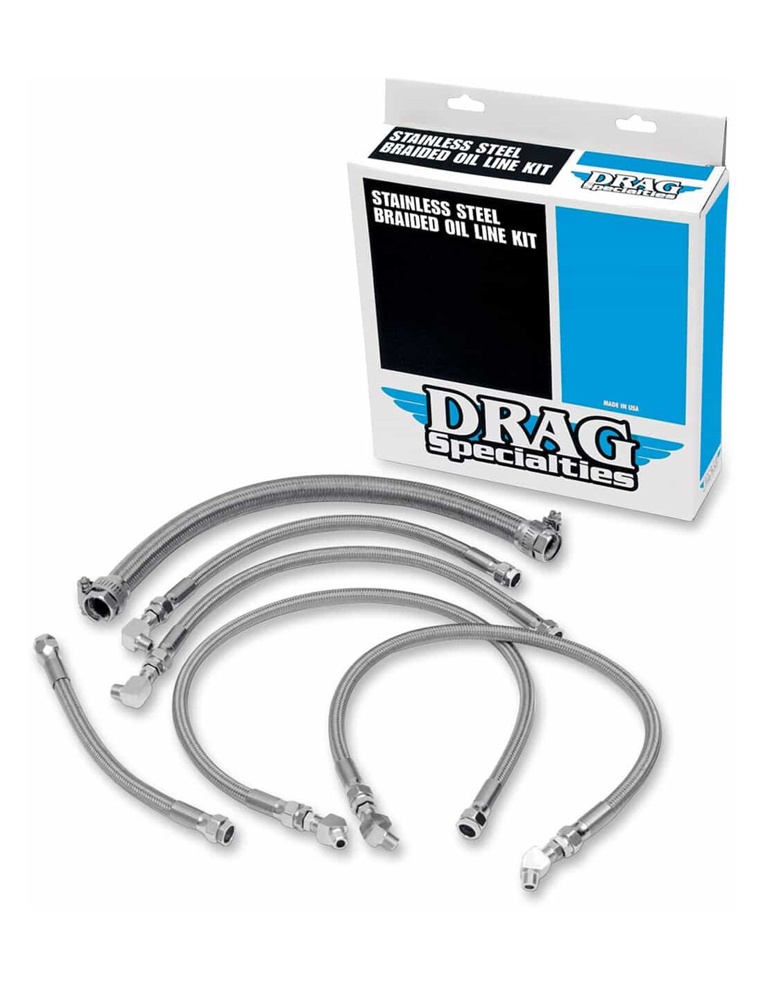 Drag SpecialtiesKit tubi olio in treccia di acciaio inossidabileRicambi diretti per i tubi olio originali I raccordi NPT e quelli a compressione sono cromati Made negli Stati Uniti