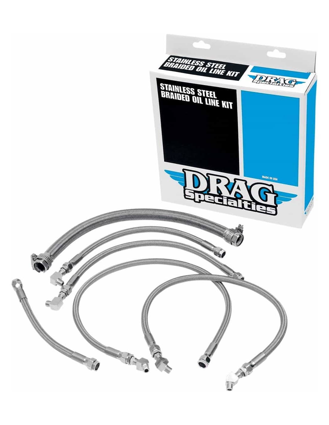 Drag SpecialtiesKit tubi olio in treccia di acciaio inossidabileRicambi diretti per i tubi olio originali I raccordi NPT e quelli a compressione sono cromati Made negli Stati Uniti