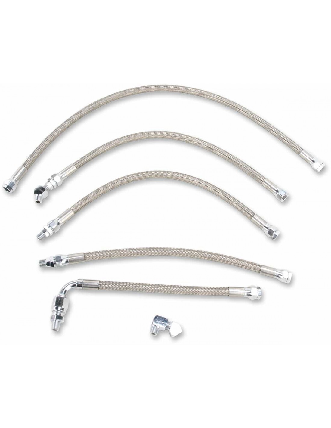 Drag SpecialtiesKit tubi olio in treccia di acciaio inossidabileRicambi diretti per i tubi olio originali I raccordi NPT e quelli a compressione sono cromati Made negli Stati Uniti