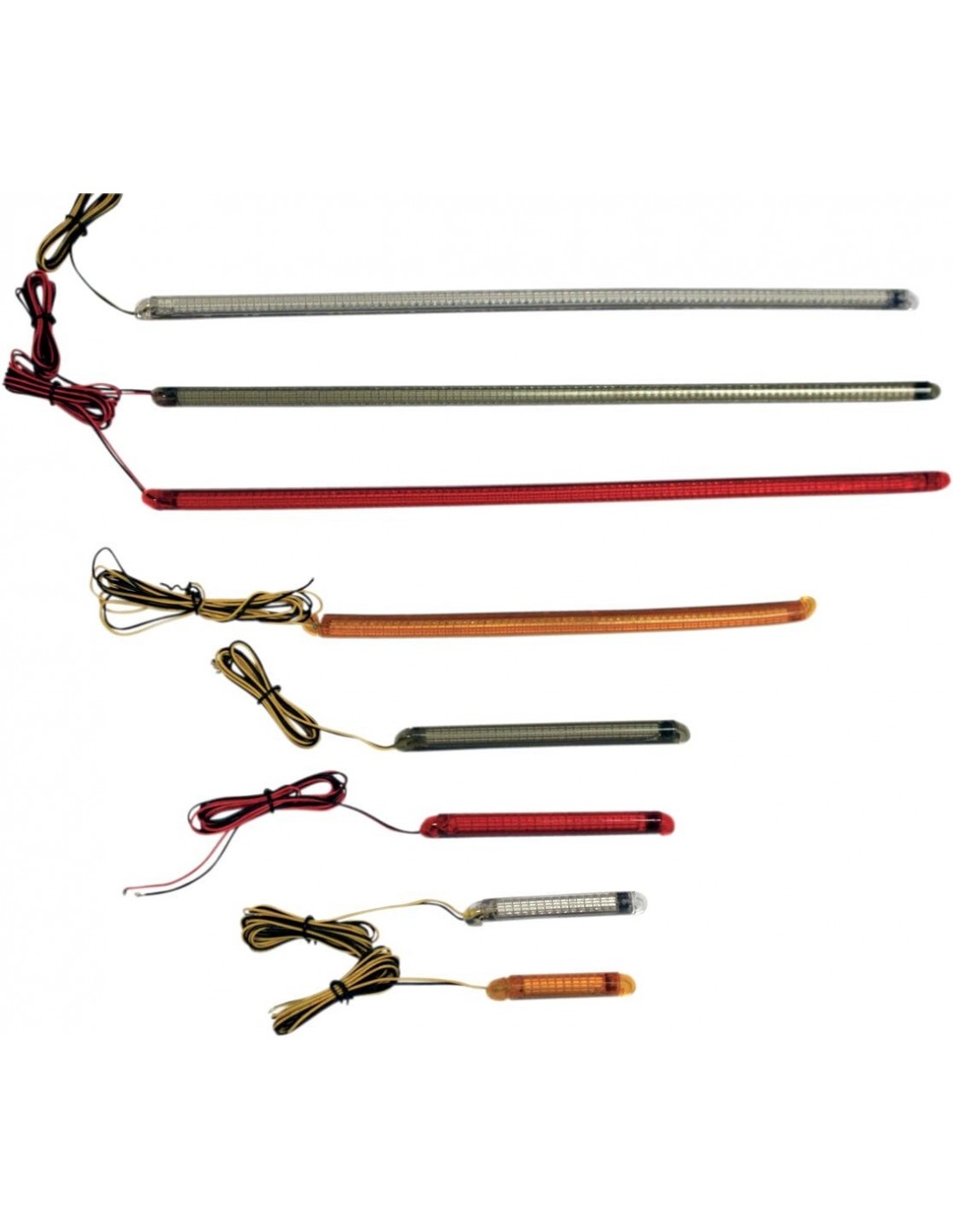 Custom DynamicsStriscia led flessibile truflex®a doppia intensità: possono essere utilizzate come luci di posizione, indicatori di direzione o luci freno e combinate a piacimento flessibilità elevata con design sfaccettato unico in grado di aumentare l'angolo visivo ogni striscia viene fissata con nastro adesivo di qualità automobilistica, sigillata con silicone rtv ultraresistente e provvista di filo di rame da 36" strisce di 0,34" larg x 0,30" alt per l'utilizzo come sistema a tre fili a doppia intensità, è necessario un convertitore doppio disponibile separatamente. br>