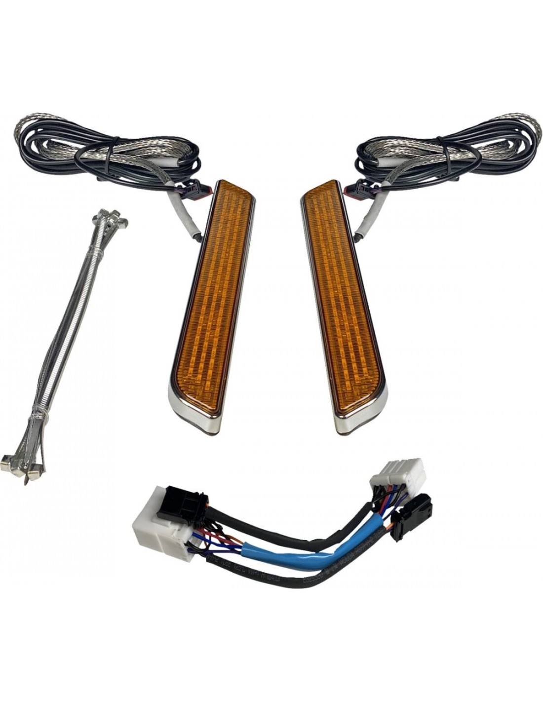 Luci led lightz™ per forcellasostituisce i catarifrangenti della forcella anteriore oem harley-davidson® nei modelli con pinze freno anteriori doppie led color ambra a intensità doppia luminosissimi per una visibilità laterale migliorata con funzione di luci di marcia e indicatori di direzione per maggiore sicurezza sulla strada le unità sono dotate di nastro adesivo per aderire al posto della parabola oem cavi plug -and-play per un facile montaggio