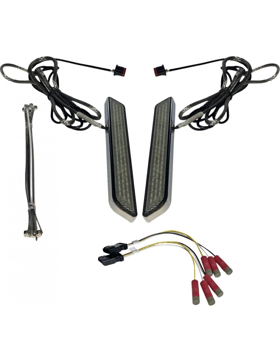 Custom DynamicsLuci led lightz™ universal per forcellasostituisce i catarifrangenti della forcella anteriore oem harley-davidson® nei modelli con pinze freno anteriori doppie led color ambra a intensità doppia luminosissimi per una visibilità laterale migliorata con funzione di luci di marcia e indicatori di direzione per maggiore sicurezza sulla strada le unità sono dotate di nastro adesivo per aderire al posto della parabola oem cavi plug-and-play per un facile montaggio