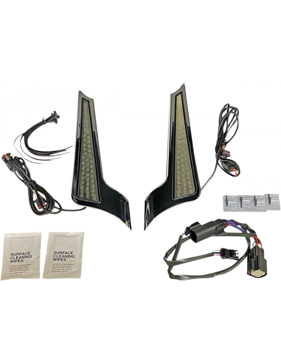 Custom DynamicsPannelli led bicolore modello “fascia”45 led a doppio colore super luminoso su ciascun lato fungono da luci rosse aggiuntive di marcia e di arresto con indicatori di direzione color ambra a pieno contrasto completamente sigillati dietro una lente fumé le unità aderiscono a ciascun lato della fascia del parafango posteriore con nastro biadesivo e includono un cablaggio plug and play per garantire una semplice installazione non compatibile con i modelli cvo