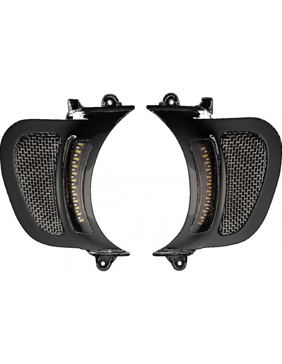 Custom DynamicsInserti led dynamic genesis® 4 per presa d'aria road glide®4 led bicolore color genesis® installati su ciascun lato della lente per una visibilità come mai prima d'ora