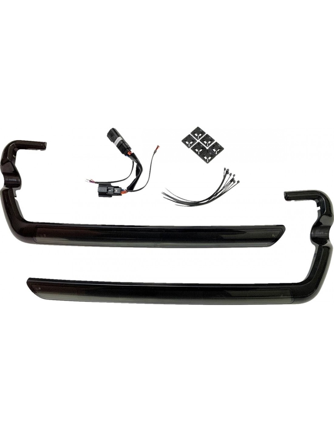 Luci di posizione laterali inferiori a led per borsaaumenta la visibilità laterale con una banda di 84 led rossi chip-on-board sul bordo inferiore di ciascuna borsa laterale oe aumenta la visibilità laterale con una banda di 84 led rossi chip-on-board dietro una lente sfaccettata sul bordo inferiore di ciascuna borsa laterale oe plug and play aggiunge un look personalizzato mentre i led a doppia intensità forniscono funzione aggiuntiva corsa/freno/girata o corsa/girata funziona come corsa/freno/girata sulla maggior parte dei modelli (funzione di sola corsa e svolta su tutti i modelli flhr e flht, flhtkse '14-'15 e '15 fltruse). le unità aderiscono con nastro di qualità automobilistica e incorporano una lente in policarbonato durevole il cablaggio incluso consente l'installazione plug and play compatibile solo con borse laterali standard oe; non compatibile con modelli dotati di borse laterali allungate.