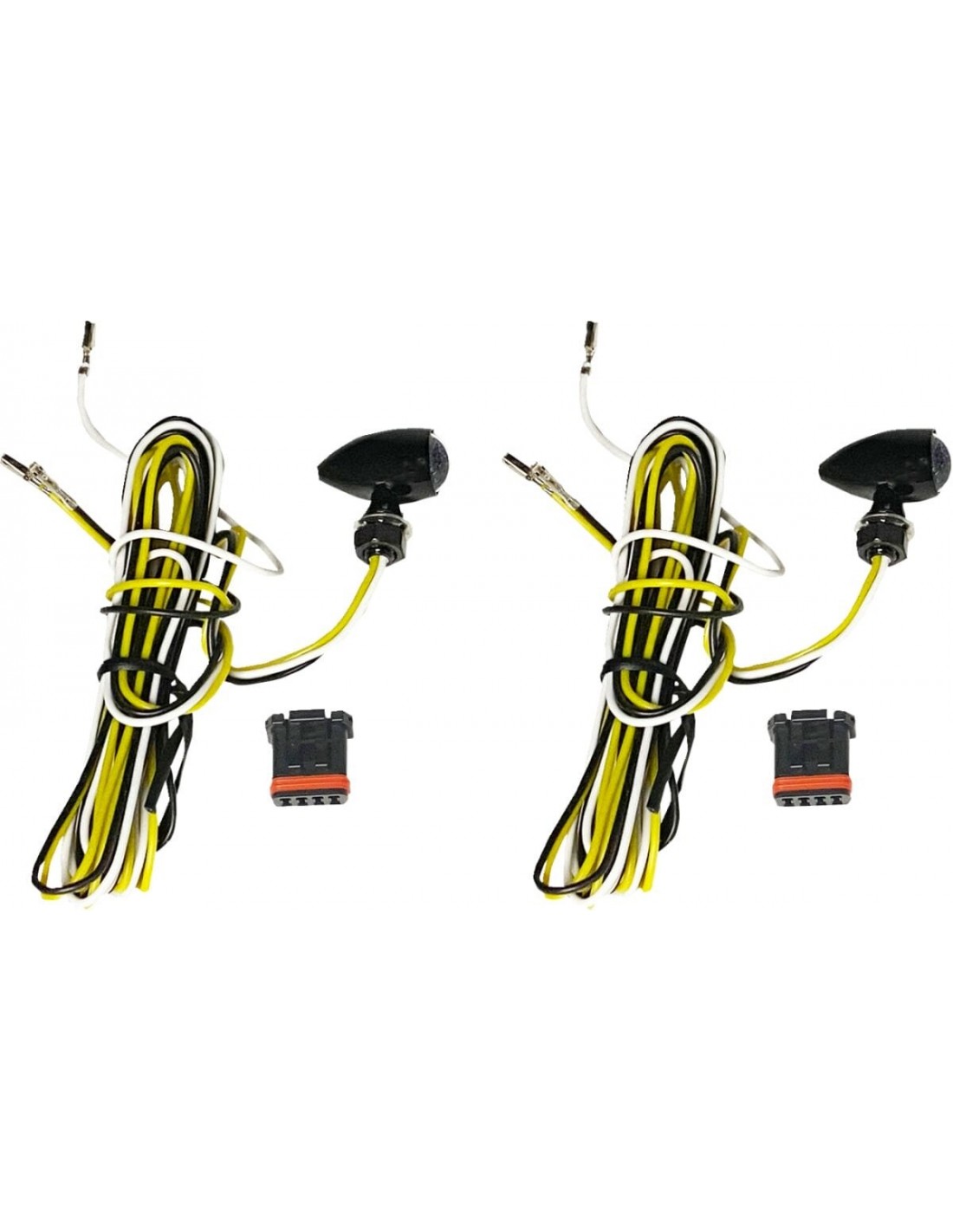Custom DynamicsIndicatori di direzione a led micro bullet v2con dimensioni inferiori a un quarto, questi indicatori di direzione micro bullet sono luminosi e compatti l'alloggiamento a forma di proiettile in alluminio con lente sferica acrilica sigillata massimizza il led uscita luminosa per un punto luminoso luminoso le unità a 3 fili funzionano come luce di marcia bianca con indicatori di direzione ambrati a contrasto completo, non sono necessari convertitori aggiuntivi i cavi da 45" sono precablati per l'uso con cablaggi opzionali disponibili per l'installazione plug and play (venduti separatamente) il cablaggio può anche essere cablato per applicazioni personalizzate cavo calibro 22 hardware di montaggio incluso