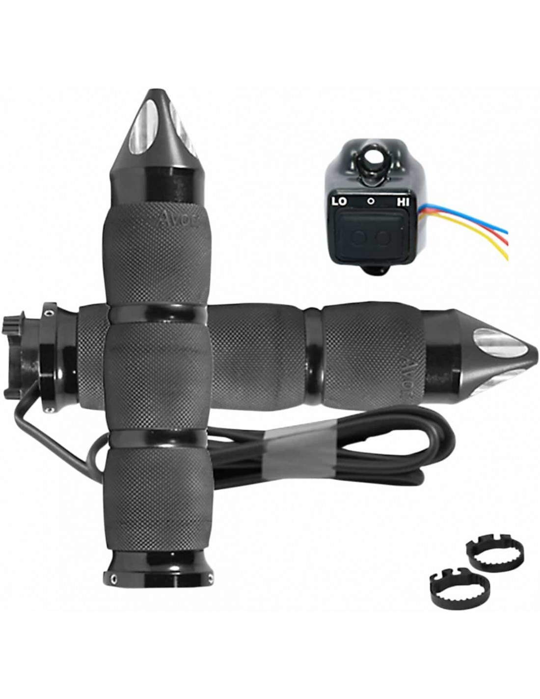 Manopole riscaldateProdotto negli USA con gomma Kraton e dotato di morbida struttura seghettata per una presa più salda Rifinite in modo impeccabile con terminali e collarini Spike in alluminio billet 6061< /li>