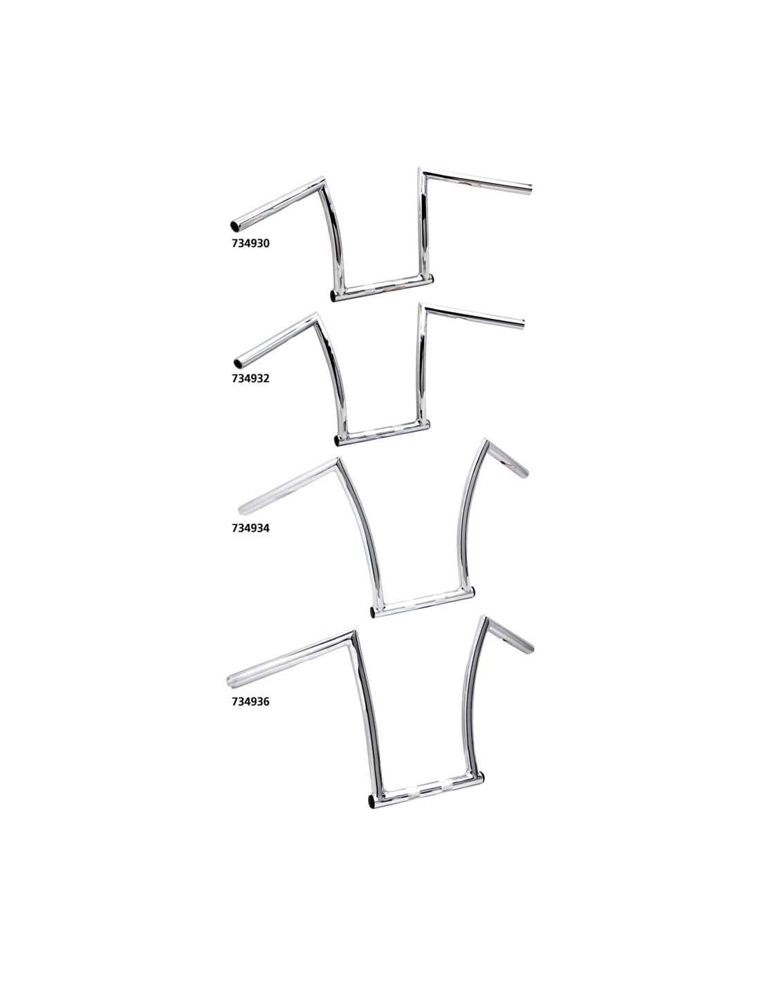 V-TwinMini Ape da 1" (25,4mm) di diametro in stile "cut edge" per un atteggiamento da chopper. I manubri sono forati per il cablaggio interno e sono dotate di intagli per l'utilizzo dell'acceleratore elettronico Throttle-By-Wire. Possono essere utilizzati anche con un normale acceleratore a cavo.