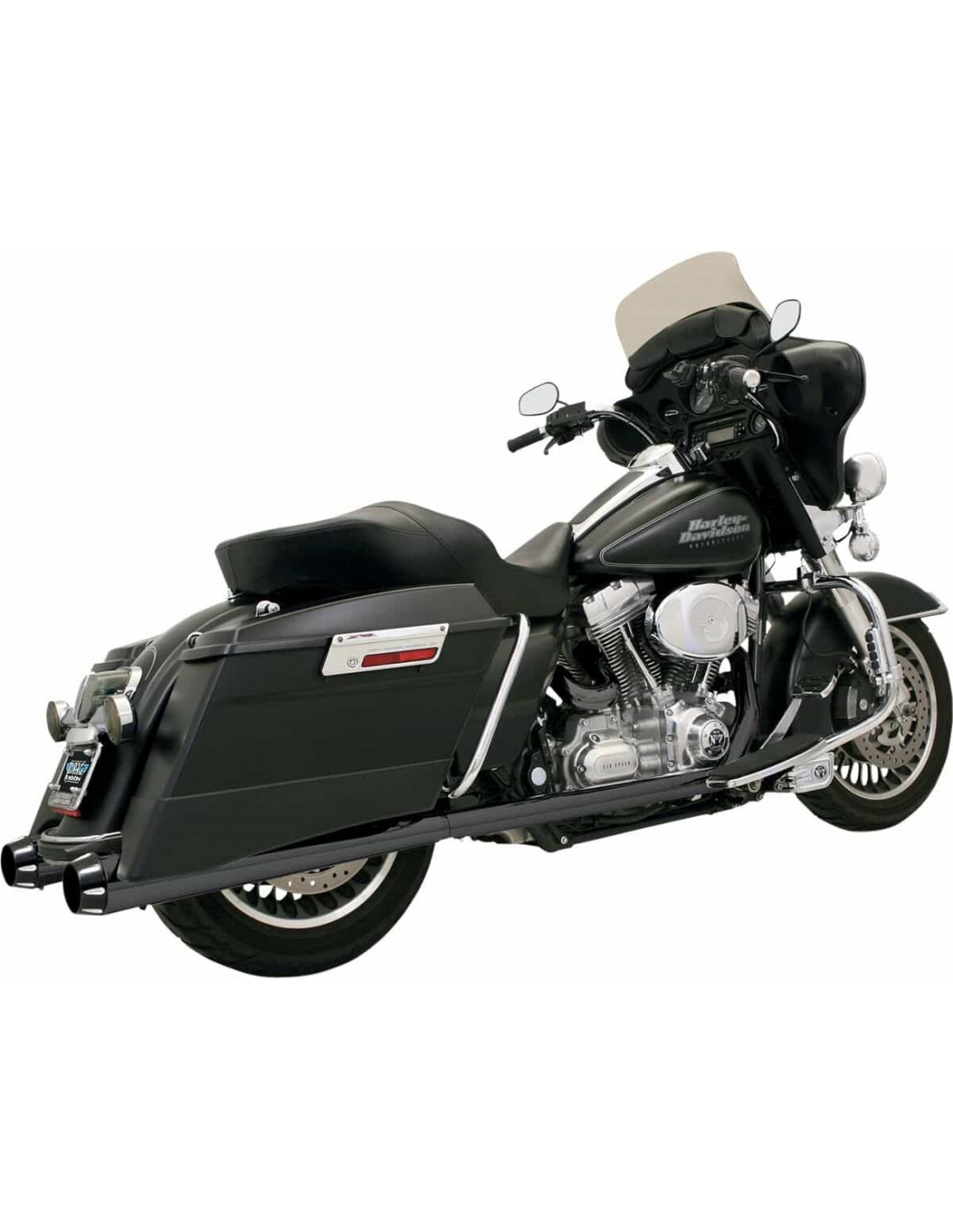 Silenziatori slip-on a megafonoSilenziatori con struttura in acciaio da 1,5 mm. Inserti ad alto flusso rimovibili Da installare nei punti di fissaggio OEM con il materiale per il montaggio fornito NOTA BENE: Pezzo di ricambio dichiarato conforme alle normative sulle emissioni in California dal produttore per i modelli FLT/FLHT/FLHX/FLTR/ FLHR 99-16.