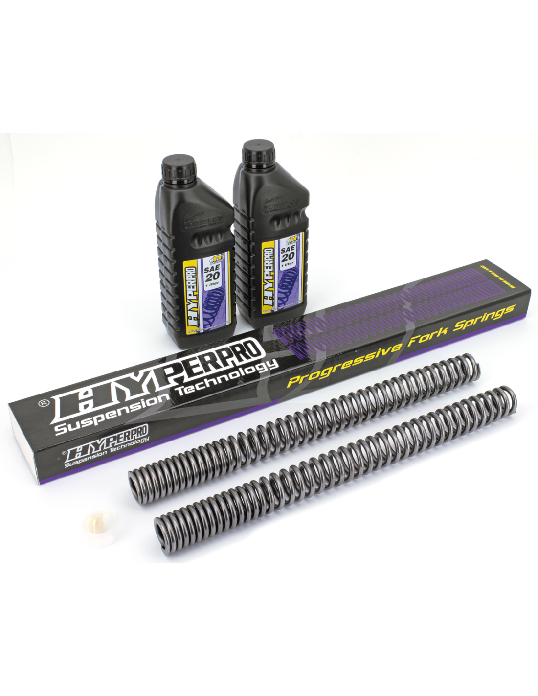 Hyperpro ha dedicato anni di ricerca e sviluppo a forcelle, ammortizzatori, molle e sistemi di sospensione anteriori. Poiché nella maggior parte dei casi una molla lineare è troppo dura o troppo morbida all'inizio e/o alla fine, una cosiddetta molla progressiva a un passo rappresenta un miglioramento, ma è ancora un compromesso tra comfort e sicurezza. Il passaggio improvviso da morbido a duro è spesso percepito come uno svantaggio e può portare a "oscillazioni di velocità". Hyperpro ha proposto una soluzione senza compromessi: il "Link-System Curve Design" per le molle. Grazie a questa struttura, una molla può essere progettata per soddisfare tutte le esigenze della moderna tecnologia motociclistica. Hyperpro offre una parte iniziale sensibile della corsa con un tasso di molla che aumenta dolcemente per garantire la sicurezza e l'anti-dive a fine corsa. L'uso di materiali di altissima qualità e la precisione della lavorazione danno vita alle migliori molle che si possano acquistare. Le molle della forcella sono prodotte in conformità alla norma DIN-2095, classe 1, sono appositamente lucidate per ridurre al minimo l'attrito e hanno una garanzia a vita contro la rottura. Le molle degli ammortizzatori garantiscono una tenuta di strada e una maneggevolezza superiori in tutte le condizioni e sono accuratamente testate su un banco di prova computerizzato e sulla moto in questione. Sono disponibili con superficie in poliestere nera o viola e con gli stessi standard tecnici delle molle della forcella. I kit forcella anteriori sono completi di molle, un litro di liquido per sospensioni Hyperpro, un tubetto di lubrificante per guarnizioni forcella Hyperpro e un manuale professionale con consigli sulle sospensioni.