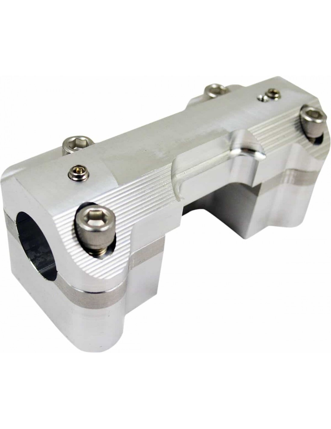 La ChoppersSet attacchi manubrioSi infilano al di sotto della cover originale Tutto il materiale necessario per l'installazione è incluso Lavorazione a CNC in alluminio 6061-T6 con finitura grezza Filettati per viti riser di 1/2”-13 La cover superiore presenta fori filettati per bloccare i manubri in posizione Dotati di dadi Made in USA