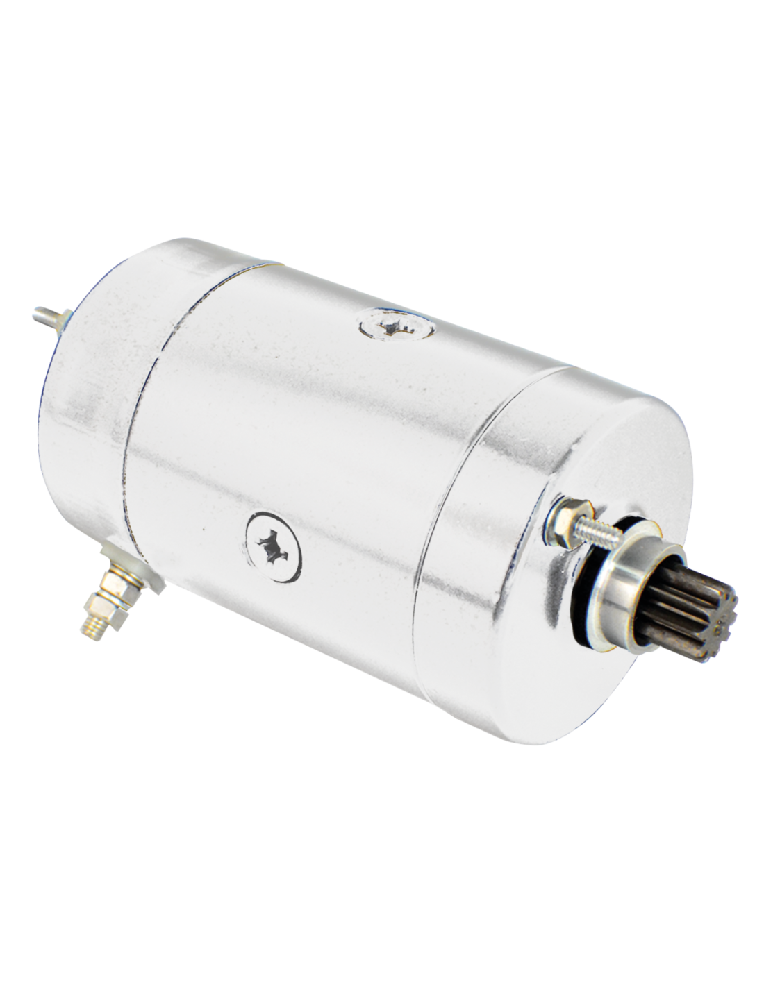 Riproduzione di qualità dal prezzo molto conveniente dei motorini d'avviamento Hitachi montati originariamente su Sportster 1974-1976, FL 1982-1984, FX 1974-1988, FLT 1984-1988 e FXR 1983-1988. Questo tipo di motorino è comunemente conosciuto come "tipo corto". Tutti i componenti sono intercambiali con quelli dei motorini d'avviamento OEM