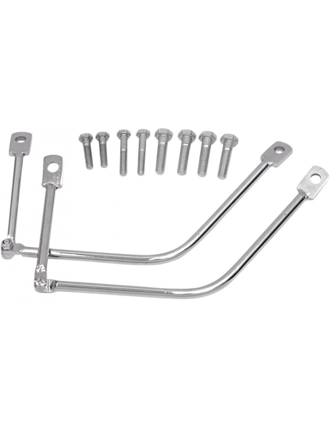 SaddlemenKit staffe di supporto valigie laterali a sgancio rapido per harleyil kit di staffe di supporto include due supporti per borse laterali in acciaio cromato e viene fornito di un assortimento di dispositivi di fissaggio da 5/ 16” e 3/8”, in lunghezze tali da adattarsi alla maggior parte dei modelli hd in uso e degli accessori