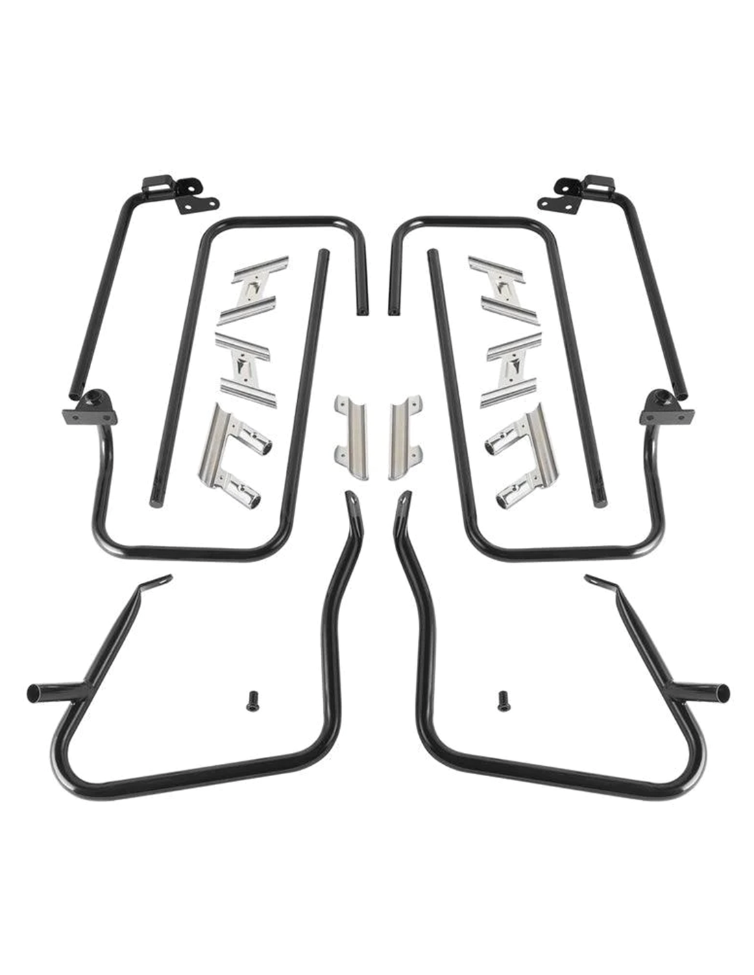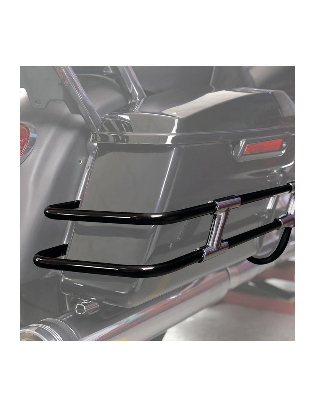 2014 a oggi Touring 103, 107 & 114CI (non CVO) e Touring 117CI 2018-2023 (non-CVO) con protezioni per il bordo anteriore delle borse OEM 90200787 (cromato) o OEM 90200788 (nero), Set completo, nero con incroci cromati (OEM 90201902, 90200788)
