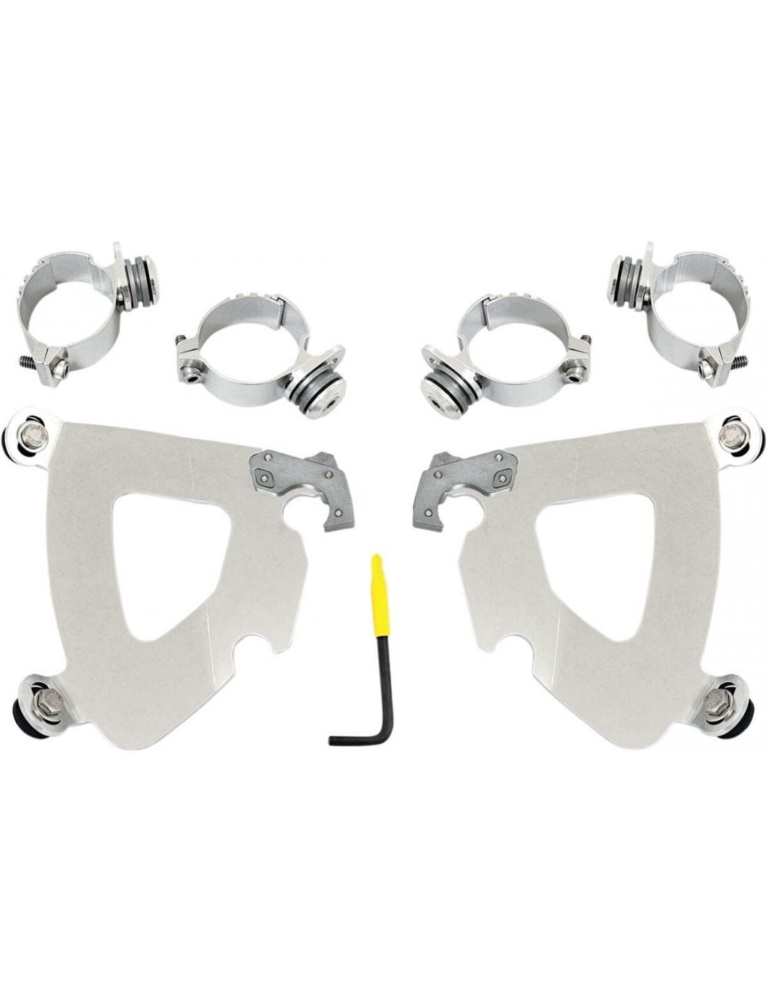 Memphis Shades HdKit materiale di montaggio a sgancio rapido per carenatura gauntletangolazione regolabile installazione specifica e semplice per il modello, senza ricorrere ad attrezzi di montaggio/smontaggio una coppia di agganci in fibra di vetro e nylon lo blocca fino a quando gli attacchi a sgancio rapido con molla non vengono disinseriti intenzionalmente esclusivamente in alluminio elettro-rivestito e acciaio inossidabile, con elementi di fissaggio in acciaio inossidabile. il materiale per il montaggio di ancoraggio è identico per tutti i parabrezza e le carenature di ciascuna moto made in the usa - made in memphis!