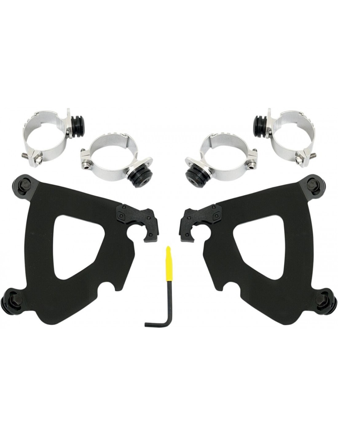 Kit materiale di montaggio a sgancio rapido per carenatura gauntletangolazione regolabile installazione specifica e semplice per il modello, senza ricorrere ad attrezzi di montaggio/smontaggio una coppia di agganci in fibra di vetro e nylon lo blocca fino a quando gli attacchi a sgancio rapido con molla non vengono disinseriti intenzionalmente esclusivamente in alluminio elettro-rivestito e acciaio inossidabile, con elementi di fissaggio in acciaio inossidabile. il materiale per il montaggio di ancoraggio è identico per tutti i parabrezza e le carenature di ciascuna moto made in the usa - made in memphis!