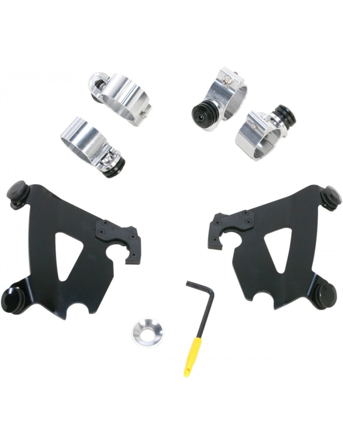 Memphis Shades HdKit materiale di montaggio a sgancio rapido per carenatura cafeangolazione regolabile installazione specifica e semplice per il modello, senza ricorrere ad attrezzi di montaggio/smontaggio una coppia di agganci in fibra di vetro e nylon lo blocca fino a quando gli attacchi a sgancio rapido con molla non vengono disinseriti intenzionalmente •esclusivamente in alluminio elettro-rivestito e acciaio inossidabile, con elementi di fissaggio in acciaio inossidabile. il materiale per il montaggio di ancoraggio è identico per tutti i parabrezza e le carenature di ciascuna moto made in the usa - made in memphis!