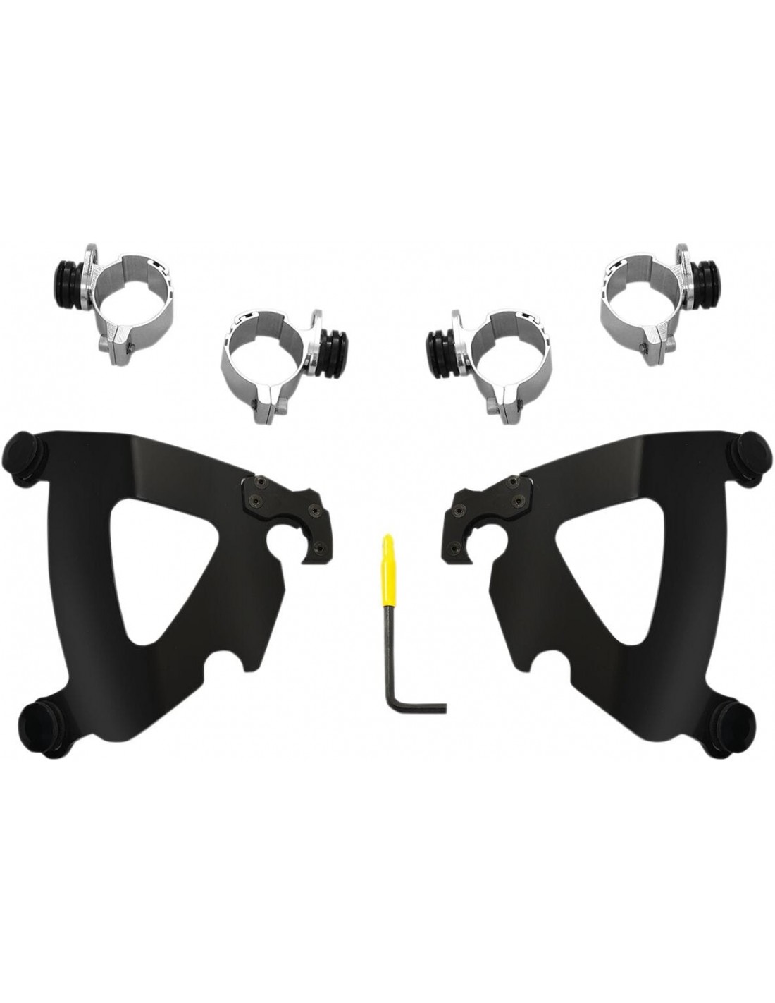 Memphis Shades HdKit di montaggio a sgancio rapido road warriorangolazione regolabile installazione specifica e semplice per il modello, senza ricorrere ad attrezzi di montaggio/smontaggio una coppia di agganci in fibra di vetro e nylon lo blocca fino a quando gli attacchi a sgancio rapido con molla non vengono disinseriti intenzionalmente esclusivamente in alluminio galvanizzato e acciaio inossidabile, con elementi di fissaggio in acciaio inossidabile il materiale per il montaggio di ancoraggio è identico per tutti i parabrezza e le carenature di ciascuna moto made in the usa - made in memphis!