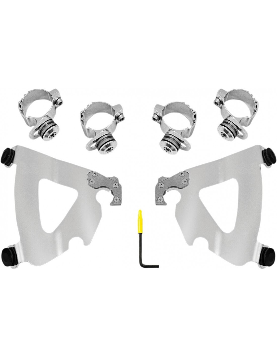 Memphis Shades HdKit di montaggio a sgancio rapido road warriorangolazione regolabile installazione specifica e semplice per il modello, senza ricorrere ad attrezzi di montaggio/smontaggio una coppia di agganci in fibra di vetro e nylon lo blocca fino a quando gli attacchi a sgancio rapido con molla non vengono disinseriti intenzionalmente esclusivamente in alluminio galvanizzato e acciaio inossidabile, con elementi di fissaggio in acciaio inossidabile il materiale per il montaggio di ancoraggio è identico per tutti i parabrezza e le carenature di ciascuna moto made in the usa - made in memphis!