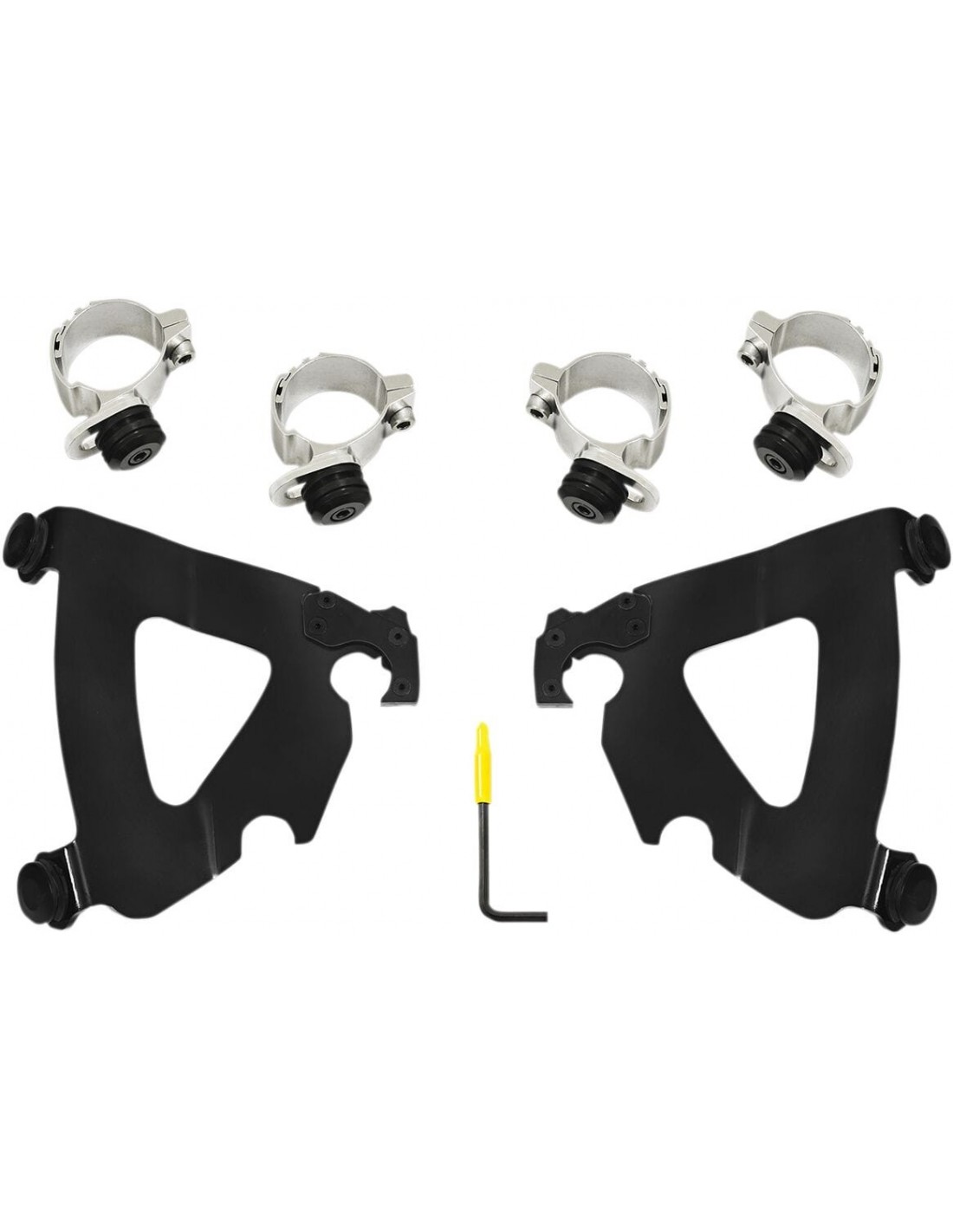 Memphis Shades HdKit di montaggio a sgancio rapido road warriorangolazione regolabile installazione specifica e semplice per il modello, senza ricorrere ad attrezzi di montaggio/smontaggio una coppia di agganci in fibra di vetro e nylon lo blocca fino a quando gli attacchi a sgancio rapido con molla non vengono disinseriti intenzionalmente esclusivamente in alluminio galvanizzato e acciaio inossidabile, con elementi di fissaggio in acciaio inossidabile il materiale per il montaggio di ancoraggio è identico per tutti i parabrezza e le carenature di ciascuna moto made in the usa - made in memphis!