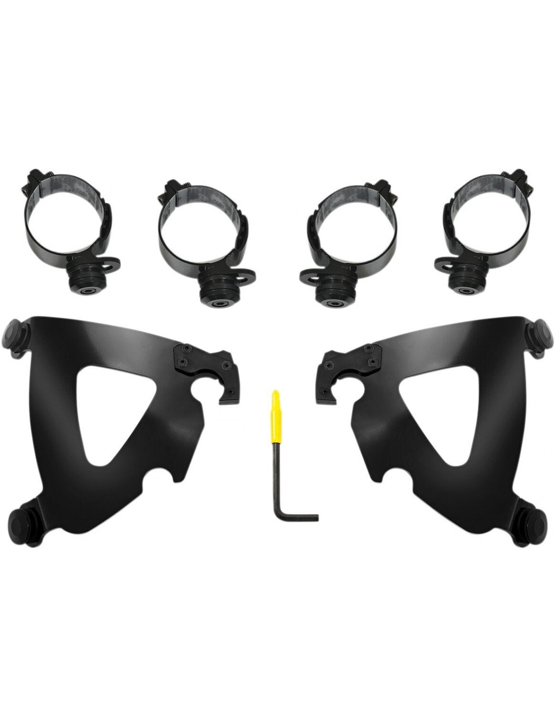 Memphis Shades HdKit di montaggio a sgancio rapido road warriorangolazione regolabile installazione specifica e semplice per il modello, senza ricorrere ad attrezzi di montaggio/smontaggio una coppia di agganci in fibra di vetro e nylon lo blocca fino a quando gli attacchi a sgancio rapido con molla non vengono disinseriti intenzionalmente esclusivamente in alluminio galvanizzato e acciaio inossidabile, con elementi di fissaggio in acciaio inossidabile il materiale per il montaggio di ancoraggio è identico per tutti i parabrezza e le carenature di ciascuna moto made in the usa - made in memphis!