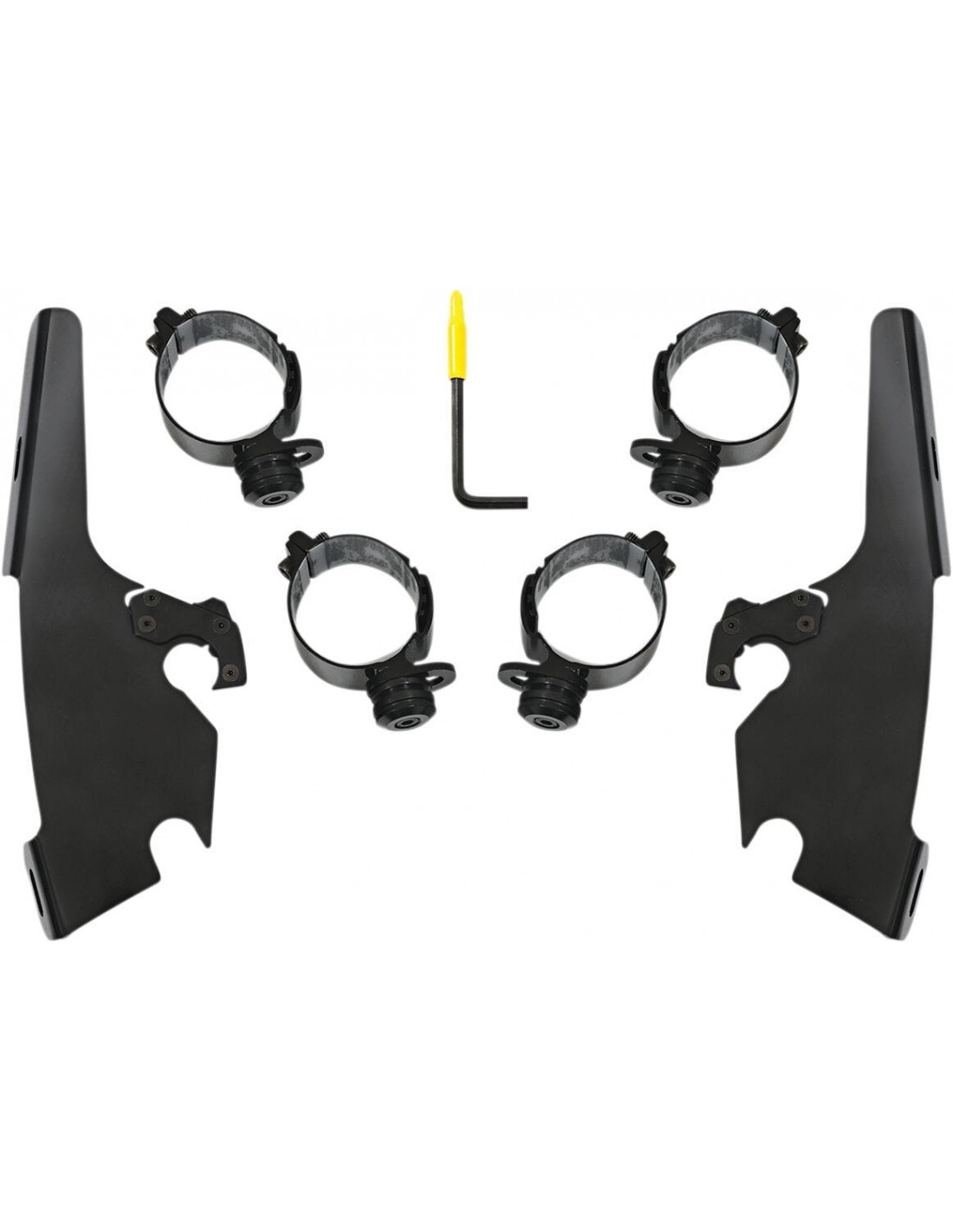 Memphis Shades HdKit di montaggio completo a sgancio rapido fats/slimangolazione regolabile installazione semplice e specifica per il modello, senza ricorrere ad attrezzi di montaggio/smontaggio una coppia di agganci in nylon rinforzato con fibra di vetro lo blocca fino a quando gli attacchi a sgancio rapido con molla non vengono disinseriti intenzionalmente esclusivamente in alluminio galvanizzato e acciaio inossidabile, con elementi di fissaggio in acciaio inossidabile il materiale per l'ancoraggio è identico per tutti i parabrezza e la cura della natura di ogni moto made in the usa - made in memphis!