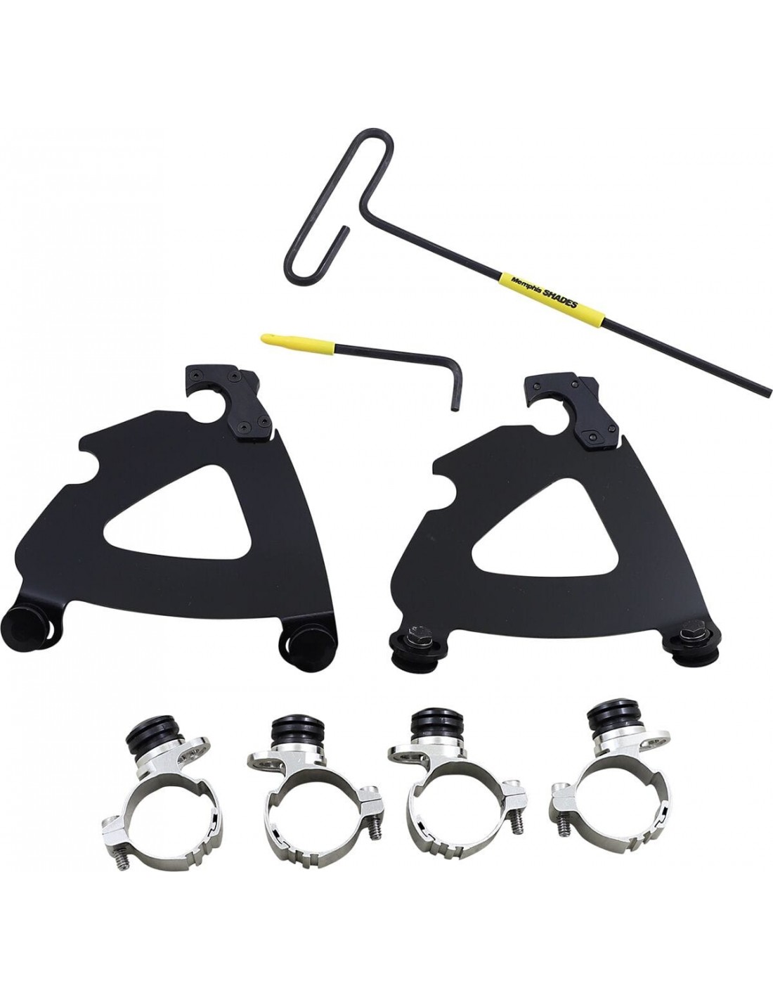 Memphis Shades HdKit di montaggio a sgancio rapido road warriorangolazione regolabile installazione specifica e semplice per il modello, senza ricorrere ad attrezzi di montaggio/smontaggio una coppia di agganci in fibra di vetro e nylon lo blocca fino a quando gli attacchi a sgancio rapido con molla non vengono disinseriti intenzionalmente esclusivamente in alluminio galvanizzato e acciaio inossidabile, con elementi di fissaggio in acciaio inossidabile il materiale per il montaggio di ancoraggio è identico per tutti i parabrezza e le carenature di ciascuna moto made in the usa - made in memphis!