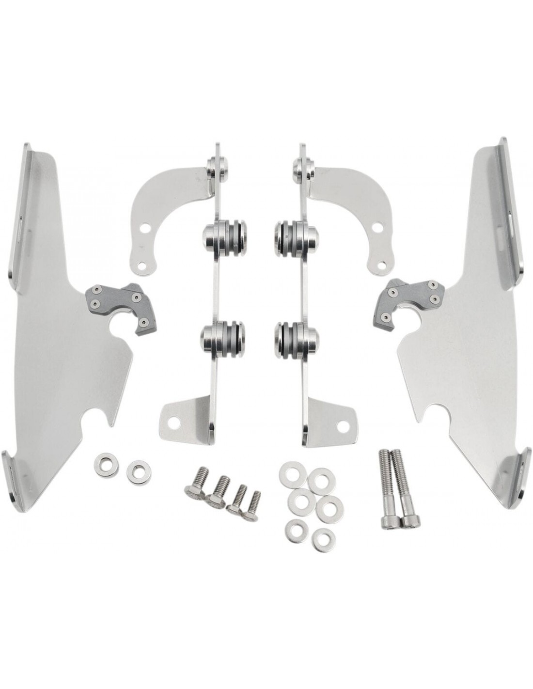 Memphis Shades MetricKit di montaggio completo a sgancio rapido per parabrezza fats/slimangolazione regolabile installazione specifica e semplice per il modello, senza ricorrere ad attrezzi di montaggio/smontaggio li> una coppia di agganci in fibra di vetro e nylon lo blocca fino a quando gli attacchi a sgancio rapido con molla non vengono disinseriti intenzionalmente esclusivamente in alluminio galvanizzato e acciaio inossidabile, con elementi di fissaggio in acciaio inossidabile il materiale per il montaggio di ancoraggio è identico per tutti i parabrezza e le carenature di ciascuna moto made in usa br>