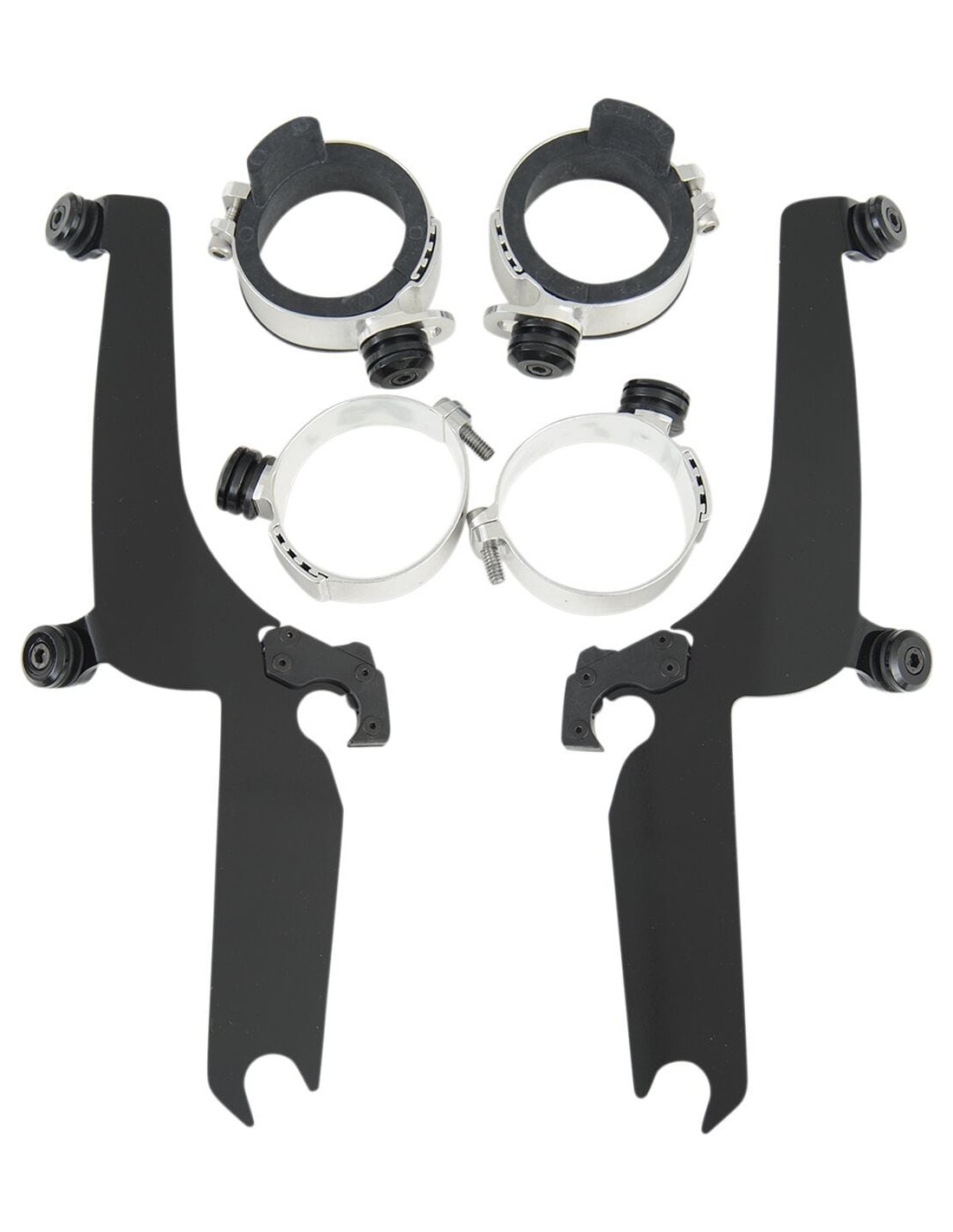 Memphis Shades MetricKit di montaggio a sgancio rapido senza utensili per parabrezza sportivomateriale di montaggio a sgancio rapido rivoluzionario, dotato di un sistema di sgancio che ti consente di rimuovere o sostituire il tuo parabrezza sportivo velocemente e facilmente , senza l'ausilio di utensili un paio di agganci fissano saldamento il parabrezza fino a quando gli attacchi a sgancio rapido con molla non vengono sganciati intenzionalmente, consentendo al pilota di rimuovere il parabrezza il kit può includere una combinazione di piastre e sistemi di ancoraggio in alluminio lavorato a cnc, materiale di montaggio in acciaio inossidabile, boccole in polimero grigio e agganci in fibra di vetro e nylon; oppure, è disponibile anche nella versione nera “night shades” con parabrezza di colore nero sfumato e con cornici, attacchi e materiale di supporto in acciaio inossidabile verniciato per cataforesi per un look minaccioso ogni kit è pensato in modo specifico per adattarsi a qualsiasi stile della moto, garantendo quindi un'installazione senza problemi usare il parabrezza con spazio per faro di 9"
