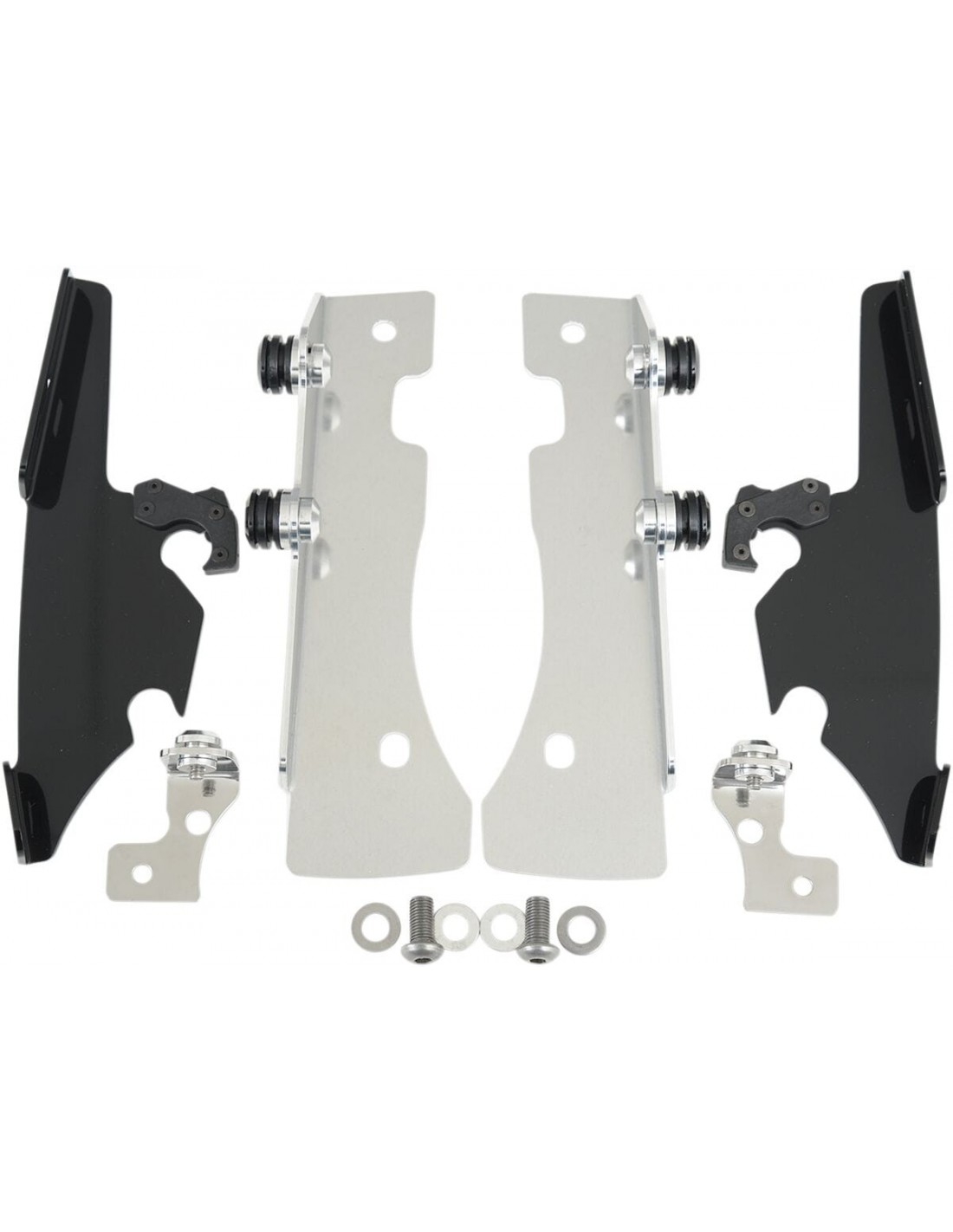 Memphis Shades MetricKit di montaggio completo a sgancio rapido per parabrezza fats/slimangolazione regolabile installazione specifica e semplice per il modello, senza ricorrere ad attrezzi di montaggio/smontaggio li> una coppia di agganci in fibra di vetro e nylon lo blocca fino a quando gli attacchi a sgancio rapido con molla non vengono disinseriti intenzionalmente esclusivamente in alluminio galvanizzato e acciaio inossidabile, con elementi di fissaggio in acciaio inossidabile il materiale per il montaggio di ancoraggio è identico per tutti i parabrezza e le carenature di ciascuna moto made in usa br>usare il parabrezza con spazio per faro di 9"