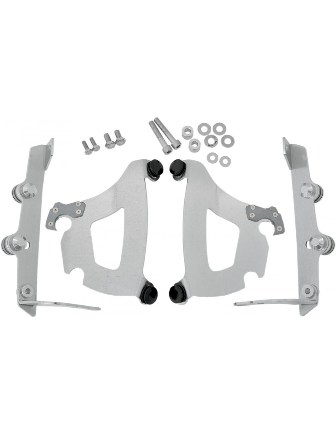 Memphis Shades MetricKit di montaggio carenatura memphis shades bulletinstallazione specifica e semplice per il modello, senza ricorrere ad attrezzi di montaggio/smontaggio una coppia di agganci in fibra di vetro e nylon lo blocca fino a quando gli attacchi a sgancio rapido con molla non vengono disinseriti intenzionalmente esclusivamente in alluminio galvanizzato e acciaio inossidabile, con elementi di fissaggio in acciaio inossidabile. il materiale per il montaggio di ancoraggio è identico per tutti i parabrezza e le carenature di ciascuna moto. made in usa