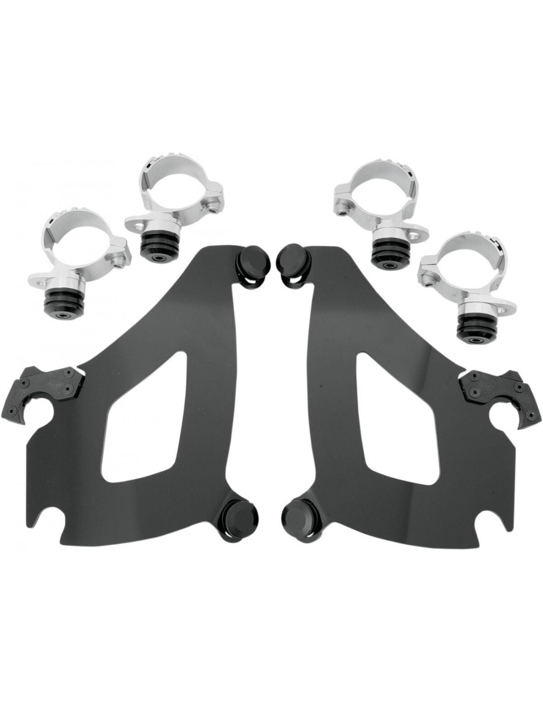 Memphis Shades MetricKit di montaggio carenatura memphis shades bulletinstallazione specifica e semplice per il modello, senza ricorrere ad attrezzi di montaggio/smontaggio una coppia di agganci in fibra di vetro e nylon lo blocca fino a quando gli attacchi a sgancio rapido con molla non vengono disinseriti intenzionalmente esclusivamente in alluminio galvanizzato e acciaio inossidabile, con elementi di fissaggio in acciaio inossidabile. il materiale per il montaggio di ancoraggio è identico per tutti i parabrezza e le carenature di ciascuna moto. made in usa