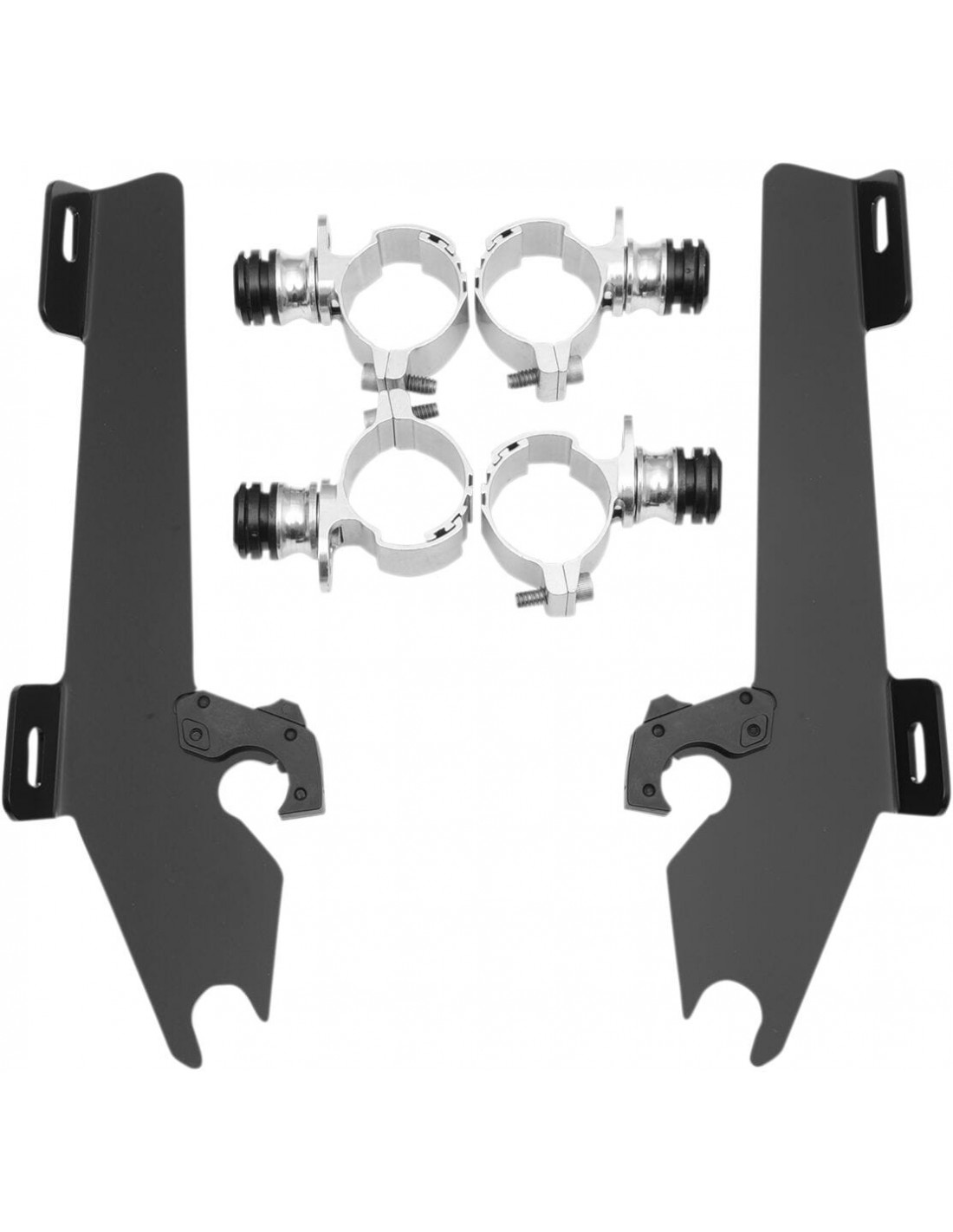 Memphis Shades MetricKit di montaggio completo a sgancio rapido per parabrezza fats/slimangolazione regolabile installazione specifica e semplice per il modello, senza ricorrere ad attrezzi di montaggio/smontaggio li> una coppia di agganci in fibra di vetro e nylon lo blocca fino a quando gli attacchi a sgancio rapido con molla non vengono disinseriti intenzionalmente esclusivamente in alluminio galvanizzato e acciaio inossidabile, con elementi di fissaggio in acciaio inossidabile il materiale per il montaggio di ancoraggio è identico per tutti i parabrezza e le carenature di ciascuna moto made in usa br>
