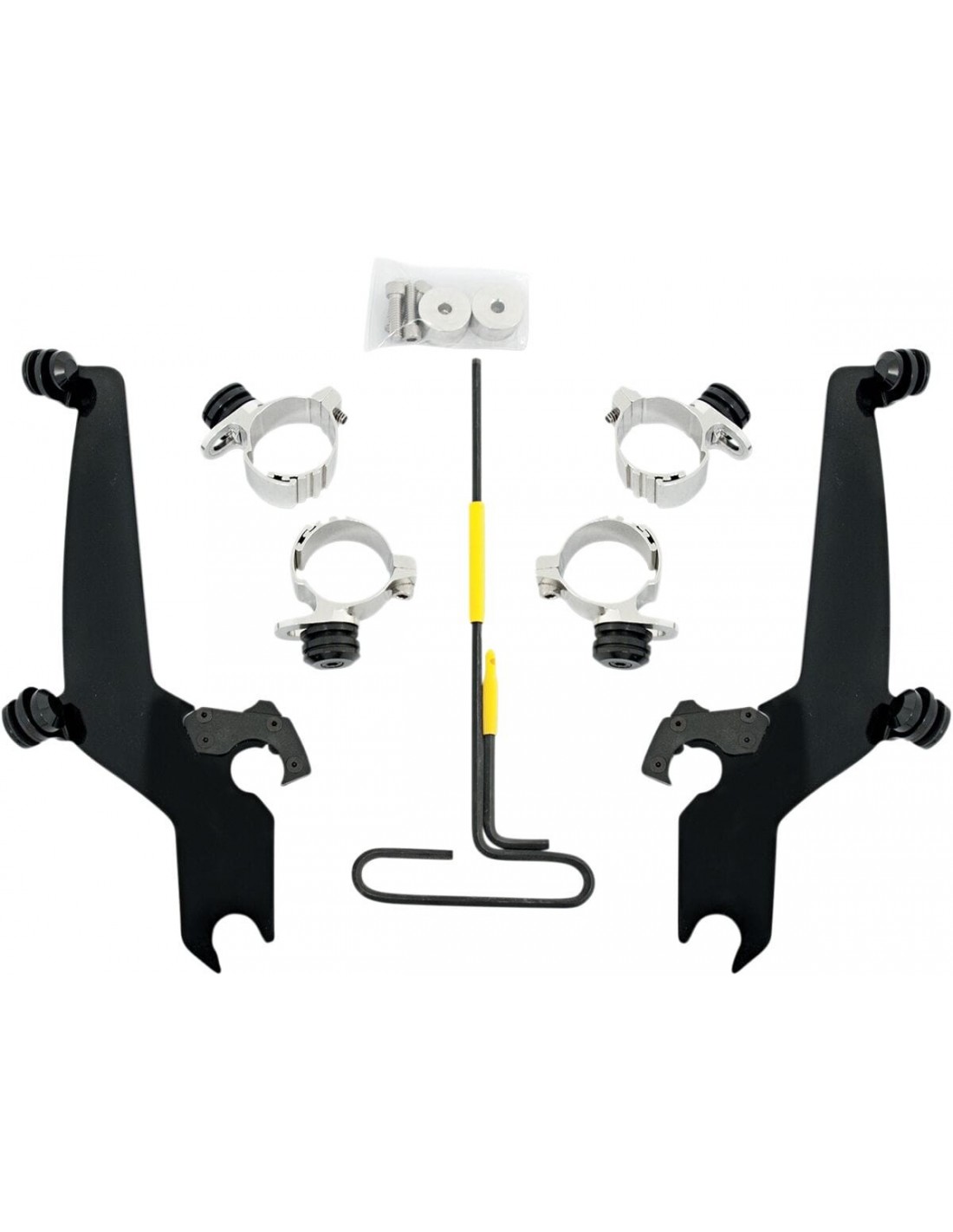 Memphis Shades MetricKit di montaggio a sgancio rapido senza utensili per parabrezza sportivomateriale di montaggio a sgancio rapido rivoluzionario, dotato di un sistema di sgancio che ti consente di rimuovere o sostituire il tuo parabrezza sportivo velocemente e facilmente , senza l'ausilio di utensili un paio di agganci fissano saldamento il parabrezza fino a quando gli attacchi a sgancio rapido con molla non vengono sganciati intenzionalmente, consentendo al pilota di rimuovere il parabrezza il kit può includere una combinazione di piastre e sistemi di ancoraggio in alluminio lavorato a cnc, materiale di montaggio in acciaio inossidabile, boccole in polimero grigio e agganci in fibra di vetro e nylon; oppure, è disponibile anche nella versione nera “night shades” con parabrezza di colore nero sfumato e con cornici, attacchi e materiale di supporto in acciaio inossidabile verniciato per cataforesi per un look minaccioso ogni kit è pensato in modo specifico per adattarsi a qualsiasi stile della moto, garantendo quindi un'installazione senza problemi