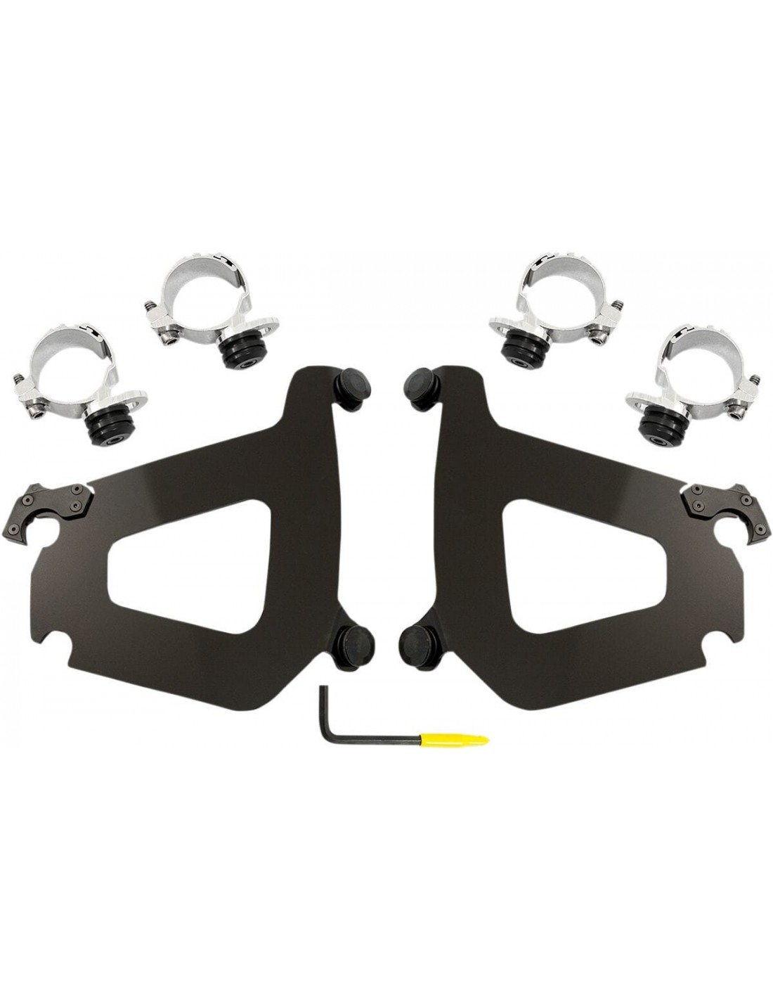 Memphis Shades MetricKit di montaggio carenatura memphis shades bulletinstallazione specifica e semplice per il modello, senza ricorrere ad attrezzi di montaggio/smontaggio una coppia di agganci in fibra di vetro e nylon lo blocca fino a quando gli attacchi a sgancio rapido con molla non vengono disinseriti intenzionalmente esclusivamente in alluminio galvanizzato e acciaio inossidabile, con elementi di fissaggio in acciaio inossidabile. il materiale per il montaggio di ancoraggio è identico per tutti i parabrezza e le carenature di ciascuna moto. made in usa