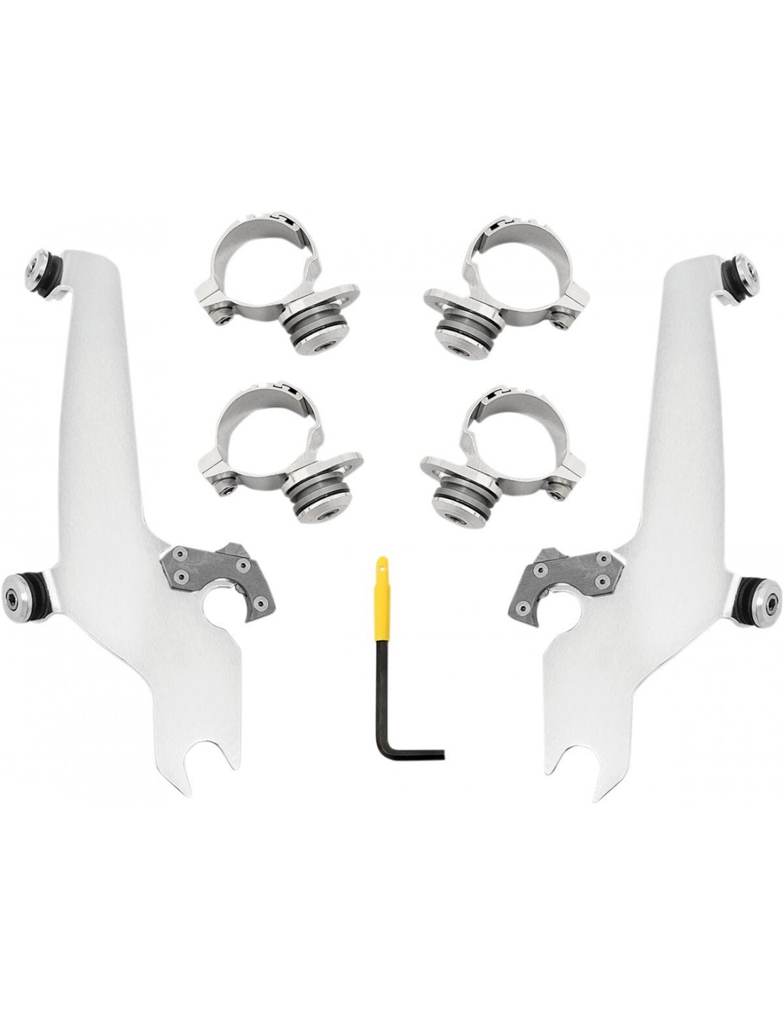 Memphis Shades MetricKit di montaggio a sgancio rapido senza utensili per parabrezza sportivomateriale di montaggio a sgancio rapido rivoluzionario, dotato di un sistema di sgancio che ti consente di rimuovere o sostituire il tuo parabrezza sportshield velocemente e facilmente , senza l'ausilio di utensili una coppia di agganci fissa saldamente il parabrezza fino a quando gli attacchi a sgancio rapido con molla non vengono intenzionalmente sganciati, consentendo di rimuovere il parabrezza il il kit può includere una combinazione di piastre e sistemi di ancoraggio in alluminio lavorato a cnc, materiale di montaggio in acciaio inossidabile, boccole in polimero grigio e agganci in fibra di vetro e nylon; oppure, è disponibile anche nella versione ogni kit è pensato in modo specifico per adattarsi a qualsiasi stile della moto, garantendo quindi un'installazione senza problemi