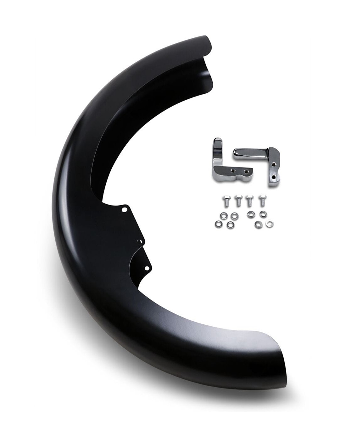 Klock WerksParafango anteriore hugger con blocchetti di montaggio per softail/dynaparafango in acciaio stampato con spessore di calibro 14 per una finitura completamente liscia finitura come quella originale verniciata per cataforesi a 13 fasi per garantire la resistenza alla corrosione tagliato al laser e preforato per un adattamento perfetto maggiore resistenza alla torsione comprovata grazie all'acciaio più resistente che funge da base il kit include materiale per il montaggio zincato made in usa attacchi cromati inclusi. Per misure ruote di 90/90-19.