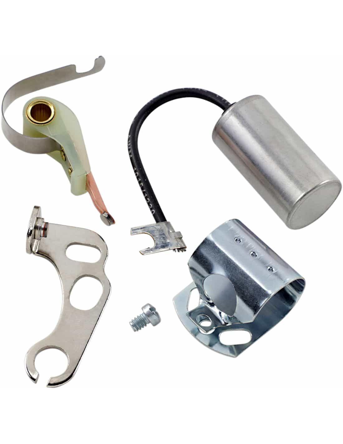 Drag SpecialtiesKit puntine e condensatoreI set di contatti includono una molla metallica progettata per ridurre la fatica del metallo e un materiale di ultimissima generazione per farli durare di più Il condensatore è a tenuta stagna per impedire guasti causa da infiltrazioni d'acqua Soddisfa o supera le specifiche OEM