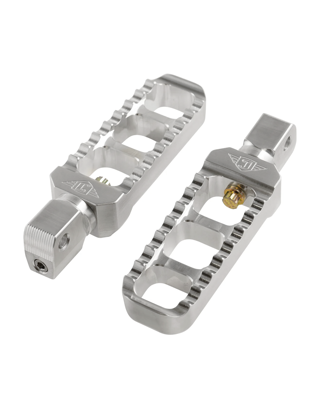 Joker MachineQueste pedane sono lavorate a CNC da barra 6061-T6. Si tratta di una struttura in 2 pezzi, resistente ma leggera, che offre una superficie del piede più ampia per una guida confortevole. La superficie dentellata offre una buona aderenza. La rotazione completa a 360 gradi li rende perfetti per qualsiasi applicazione. La vite di regolazione del passo li mantiene sempre in una buona posizione di guida. Queste pedane sono vendute in coppia e si adattano a tutte le Indian Scout 2015 a oggi e tutte Victory Octane 2017.